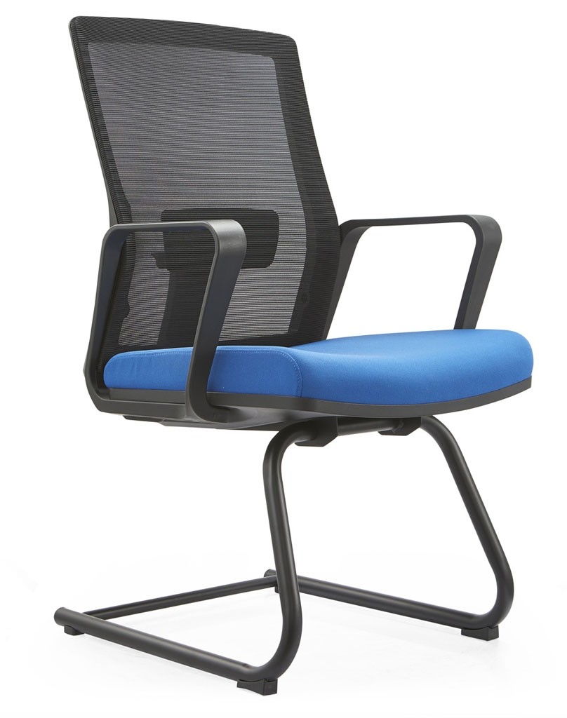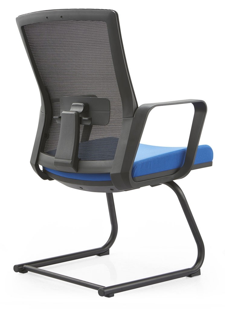 Opremite svoju konferencijsku salu modernom i udobnom konferencijskom stolicom TROGI, koja će vam pružiti udobnost tijekom sjedenja u svim godišnjim dobima. Presvučena kvalitetnom mrežastom tkaninom, dostupna je u kombinaciji crne i plave koja blago uljepšava ured. Zbog jednostavnog dizajna, stolica je pogodna i za kućnu upotrebu.