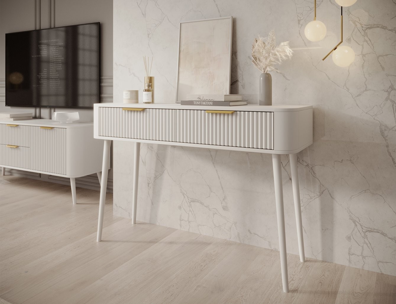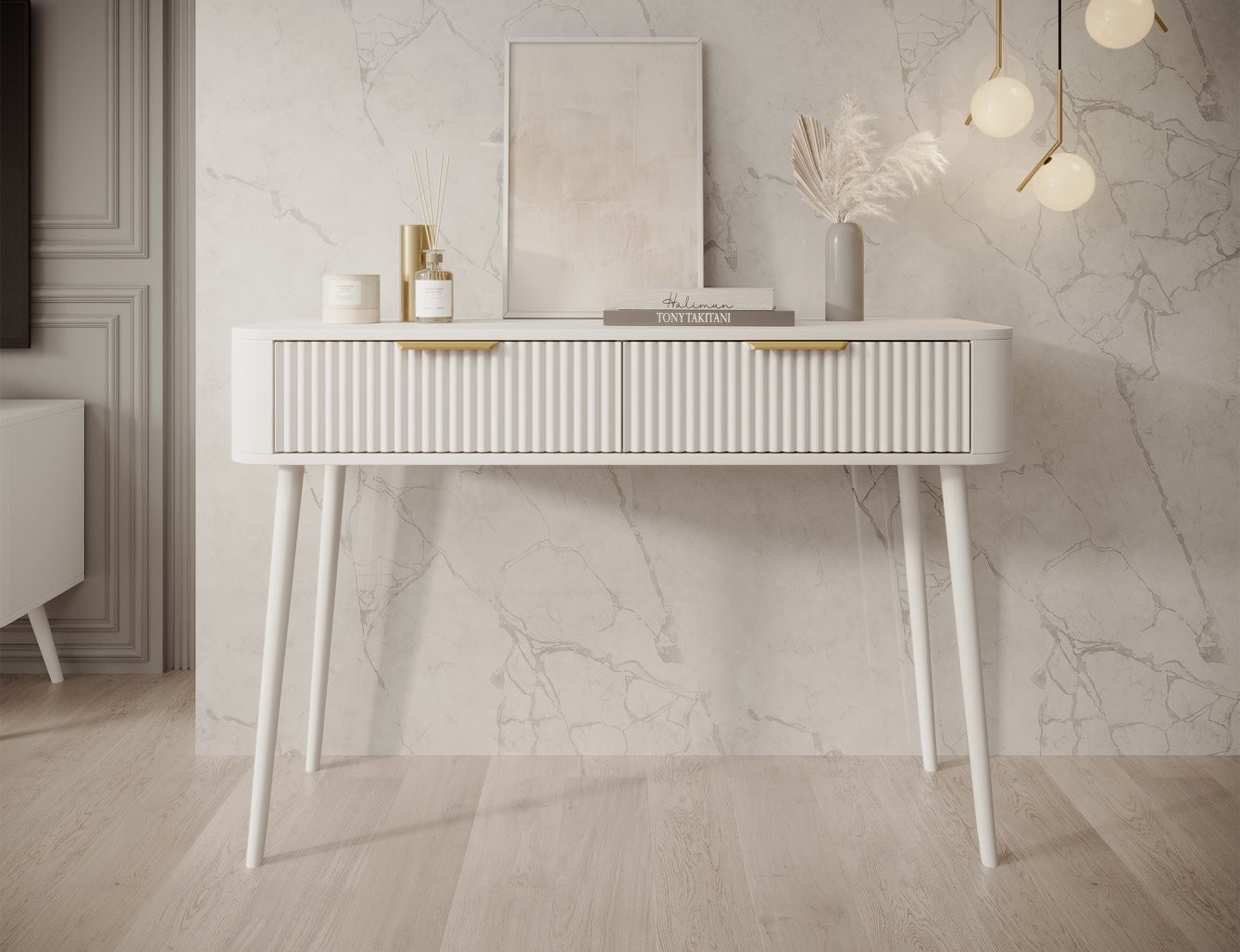 Konzolna komoda Chavelle je stilski i funkcionalan komad namještaja modernog dizajna, savršen za spavaću ili garderobnu sobu. Svojim dimenzijama (120x80x40 cm) nudi idealnu ravnotežu između praktičnosti i elegancije, lako se uklapajući u suvremene interijere.