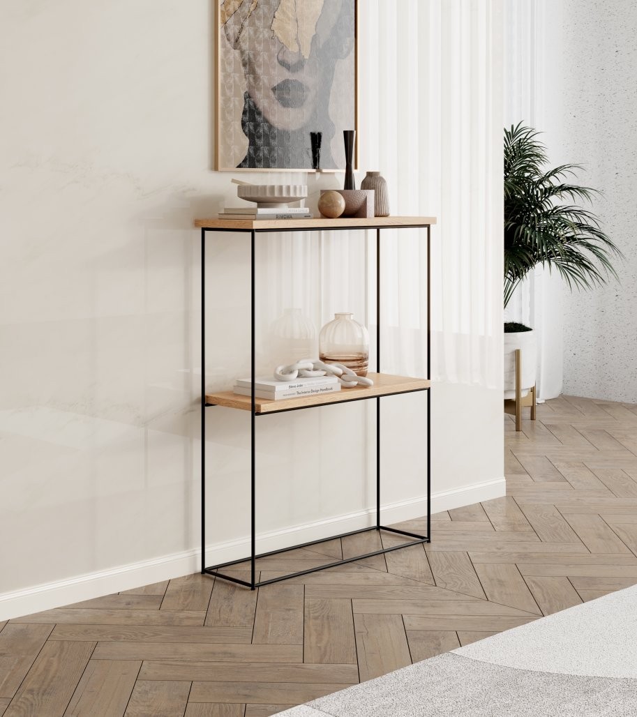 Ovaj konzolni stol idealan je za izlaganje dekorativnih predmeta ili kao praktična odlagalna površina u hodniku, dnevnom boravku ili spavaćoj sobi.