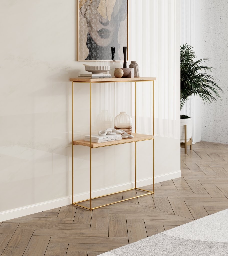 Ovaj konzolni stol idealan je za izlaganje dekorativnih predmeta ili kao praktična odlagalna površina u hodniku, dnevnom boravku ili spavaćoj sobi.
