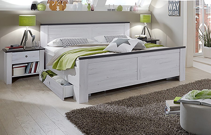 Krevet CHATEAU je krevet u modernom vintage dizajnu u bijeli boji sa sivim detaljima. Po visini ima podesivu podnicu. Krevet ima dvije ladice. Pogledajte si još ostale elemente tog programa - garderobni ormar, noćni ormarić (2 kom/set).