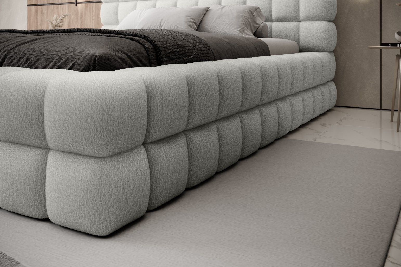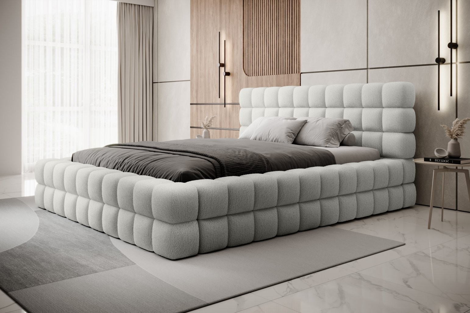 Visina sjedišta je 42 cm; za postizanje potpune udobnosti spavanja ne zaboravite dodati i visinu madraca. Također možete birati između različitih dimenzija madraca i brojnih boja presvlake, što vam omogućuje da krevet u potpunosti prilagodite svom ukusu i interijeru.