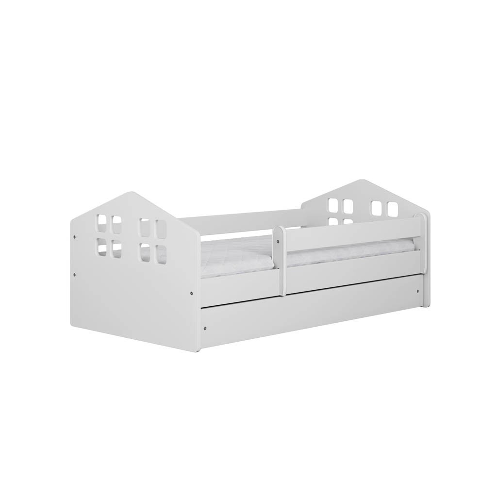 KLARA dječji krevetić pobudit će znatiželju u vašem djetetu i stvoriti ugodan ambijent u dječjoj sobi za kreativno provođenje slobodnog vremena. Dostupan je u minimalističkoj bijeloj boji koja se lijepo uklapa u svaku prostoriju i lako se kombinira sa svim ostalim bojama. Krevet uključuje krevetni pod, madrac od pjene, sigurnosnu ogradu i prikladnu ladicu za pomoćni krevet s puno prostora za pohranu.