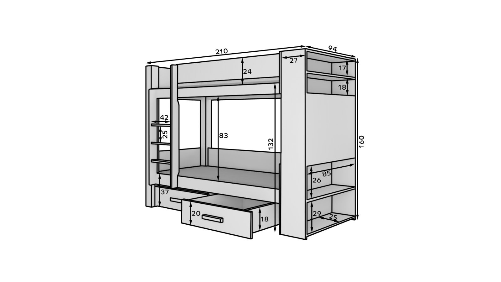 Krevet na kat GARET za 2 osobe s madracima savršeno je rješenje za uštedu prostora u dječjoj ili tinejdžerskoj sobi. Svojom funkcionalnošću i modernim dizajnom pruža udobnost i sigurnost te omogućuje prilagodbu prema vašim željama.