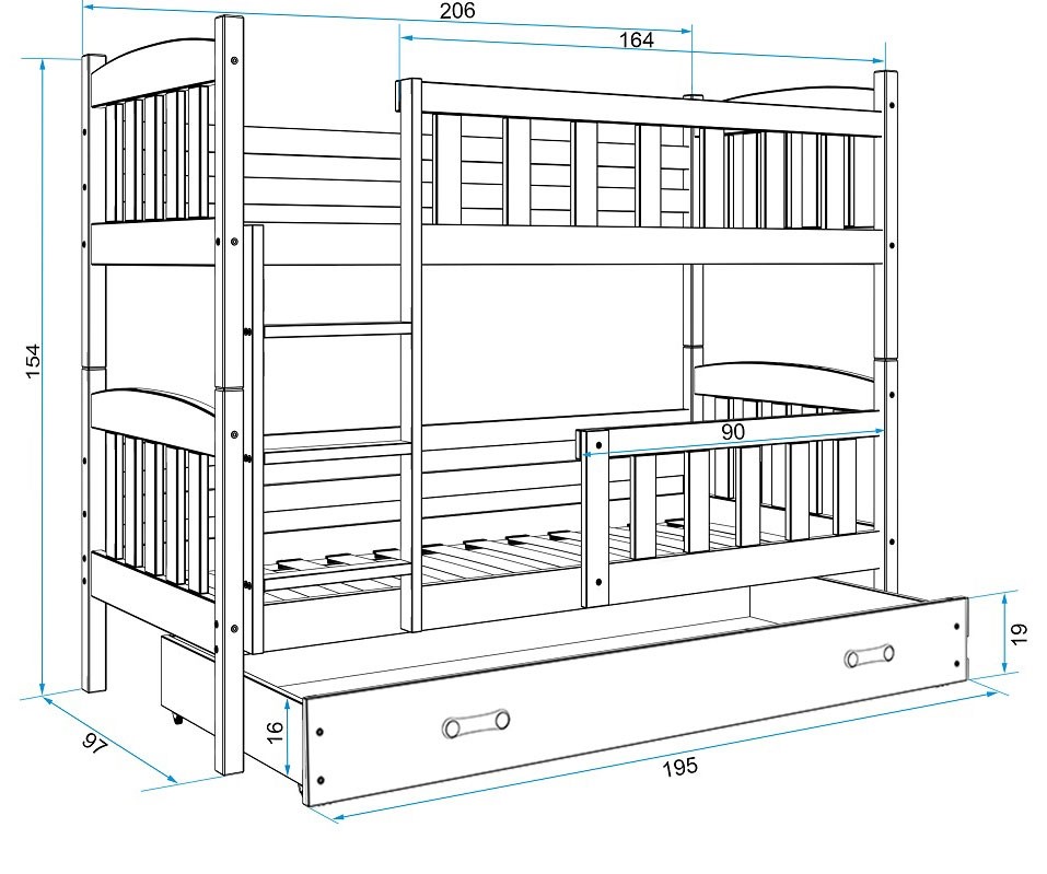 Kupnjom kreveta na kat KUBUS dobivate okvir kreveta u željenoj boji, praktičnu ladicu i BESPLATNE podnice i pjenaste madrace!
