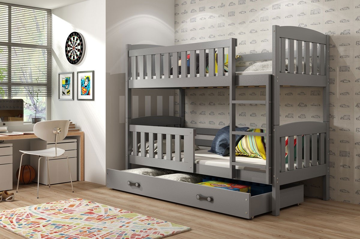 Krevet na kat KUBUS nudi udobno spavanje i sadrži ladicu u koju možete spremiti igračke ili odjeću. Njegov prekrasan dizajn oživljava cijelu dječju sobu, gdje će vaše dijete rado boraviti tijekom igre ili učenja.