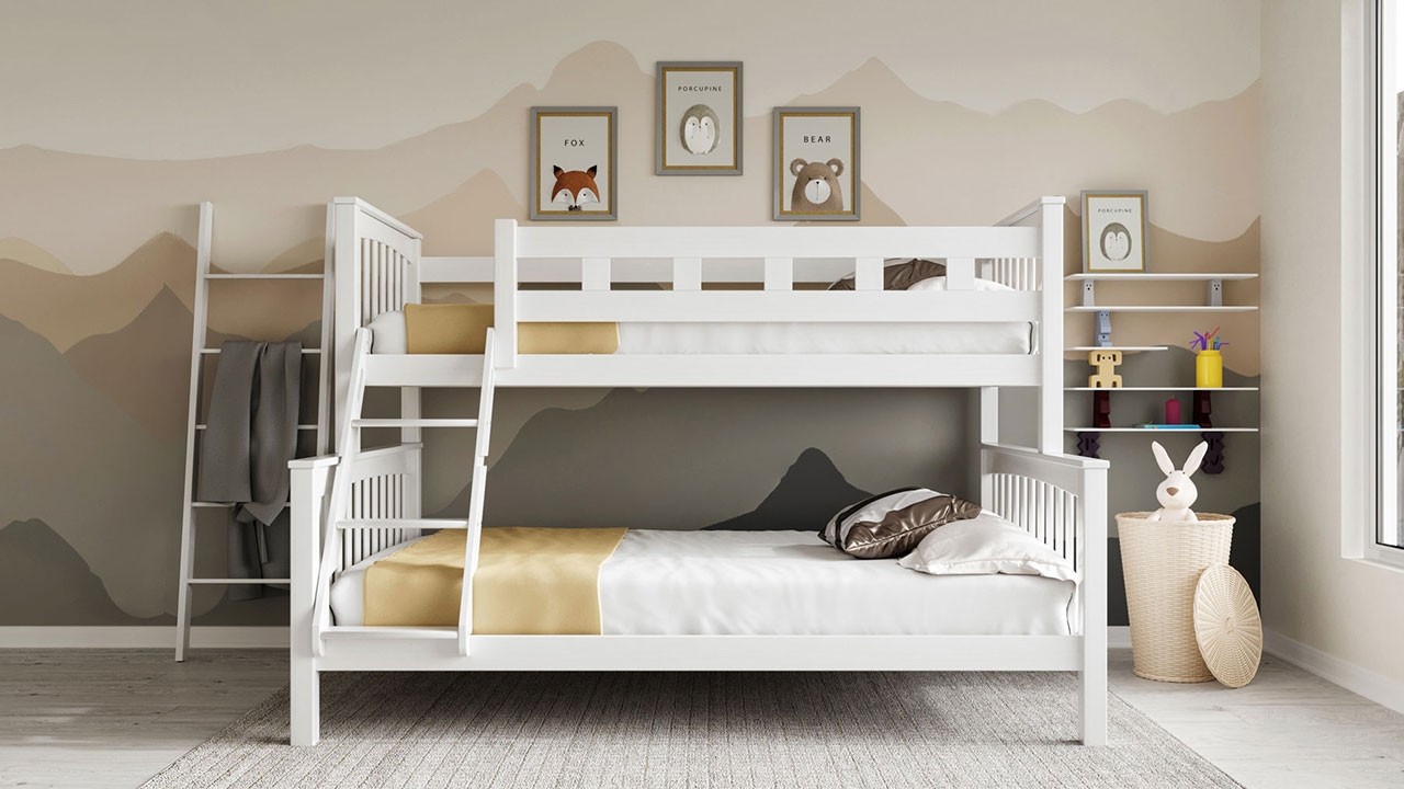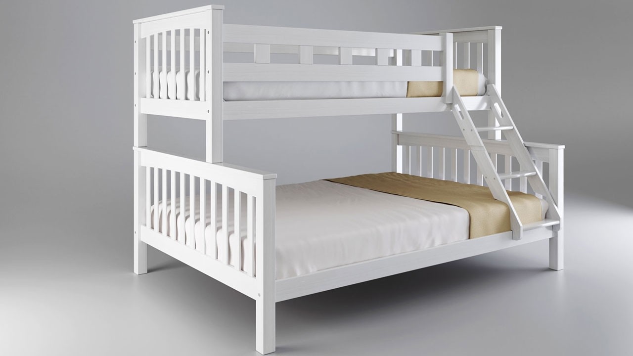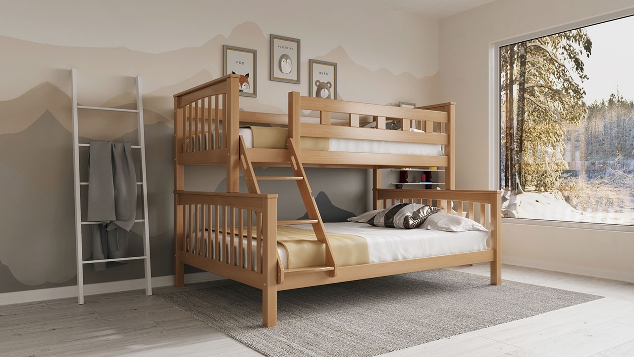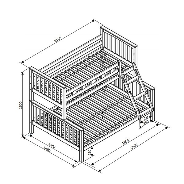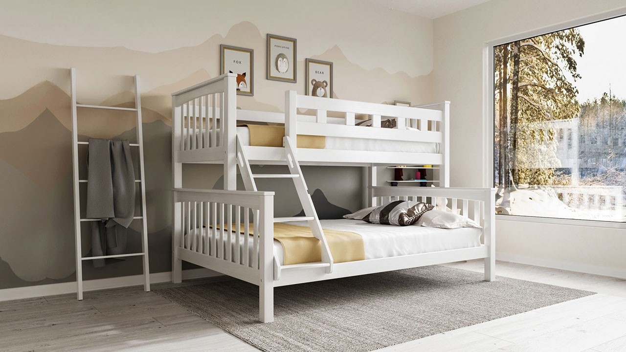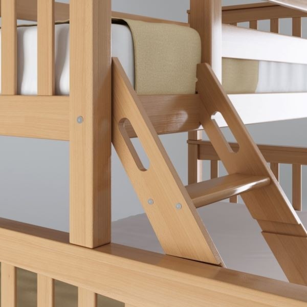 Opremite dječiju sobu sa kvalitetnim krevetom na kat LUDWIG L, koji je sastavljen iz dva kreveta dimenzija 90x200 i 140x200 cm. Krevet na kat izrađen je od masivnog bukovog drveta i ima veliku nosivost, zbog čega su kvaltieta i sigurnost garantovani. Dostupan je u bijeloj i natur boji, koje se savršeno uklapaju u svaku dječiju sobu.