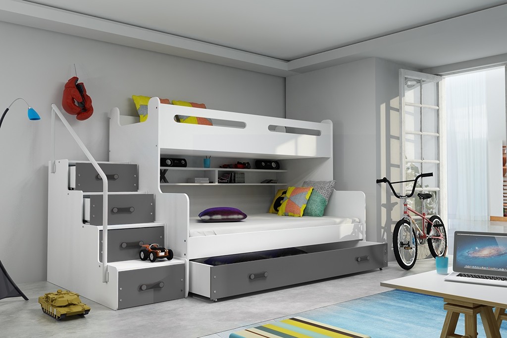 Kada kupite krevet na kat MAXIM, dobivate okvir kreveta u željenoj boji, praktičnu ladicu za krevet i komplet manjih ladica ispod stepenica i BESPLATNU podnicu i pjenasti ležaj!