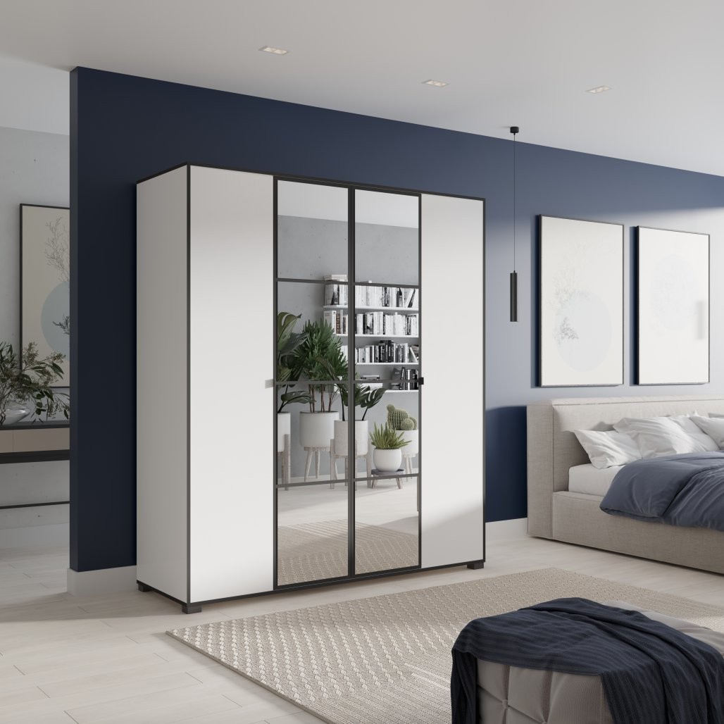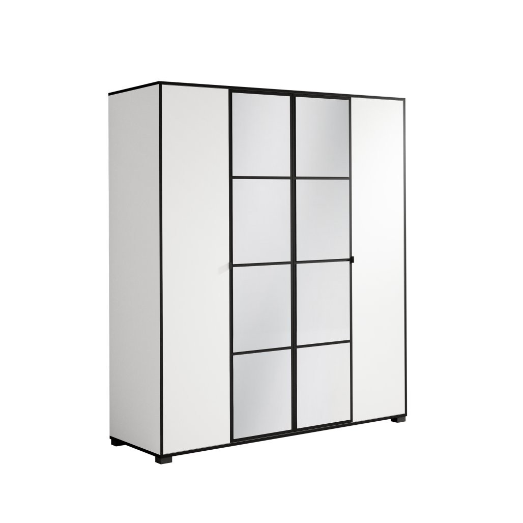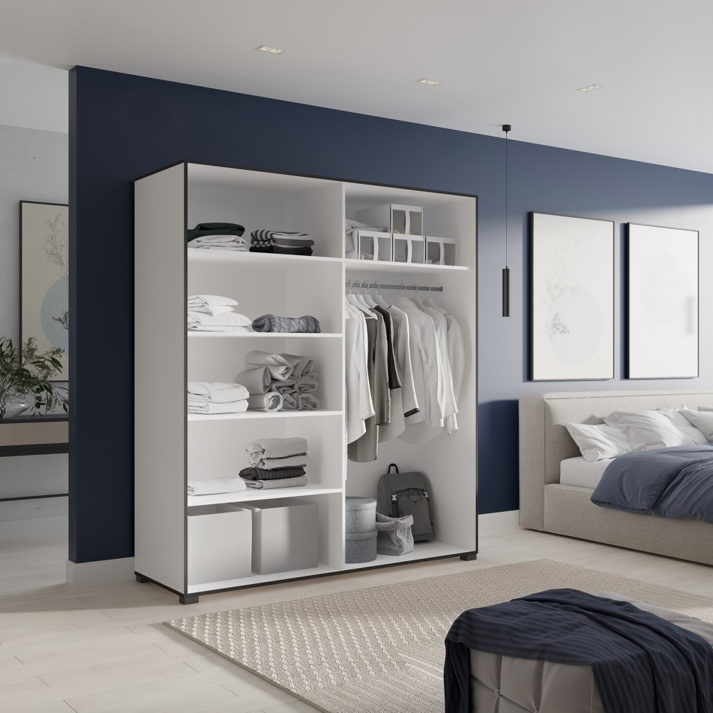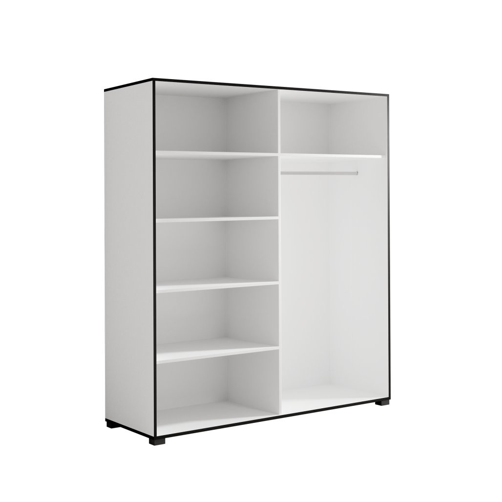 Krilni ormar s ogledalom OSMA 180 cm predstavlja elegantno i praktično rješenje za vaš dom. S modernom crno-bijelom kombinacijom boja i funkcionalnim rasporedom unutrašnjosti, savršen je za spavaće sobe, dnevne boravke ili hodnike.
