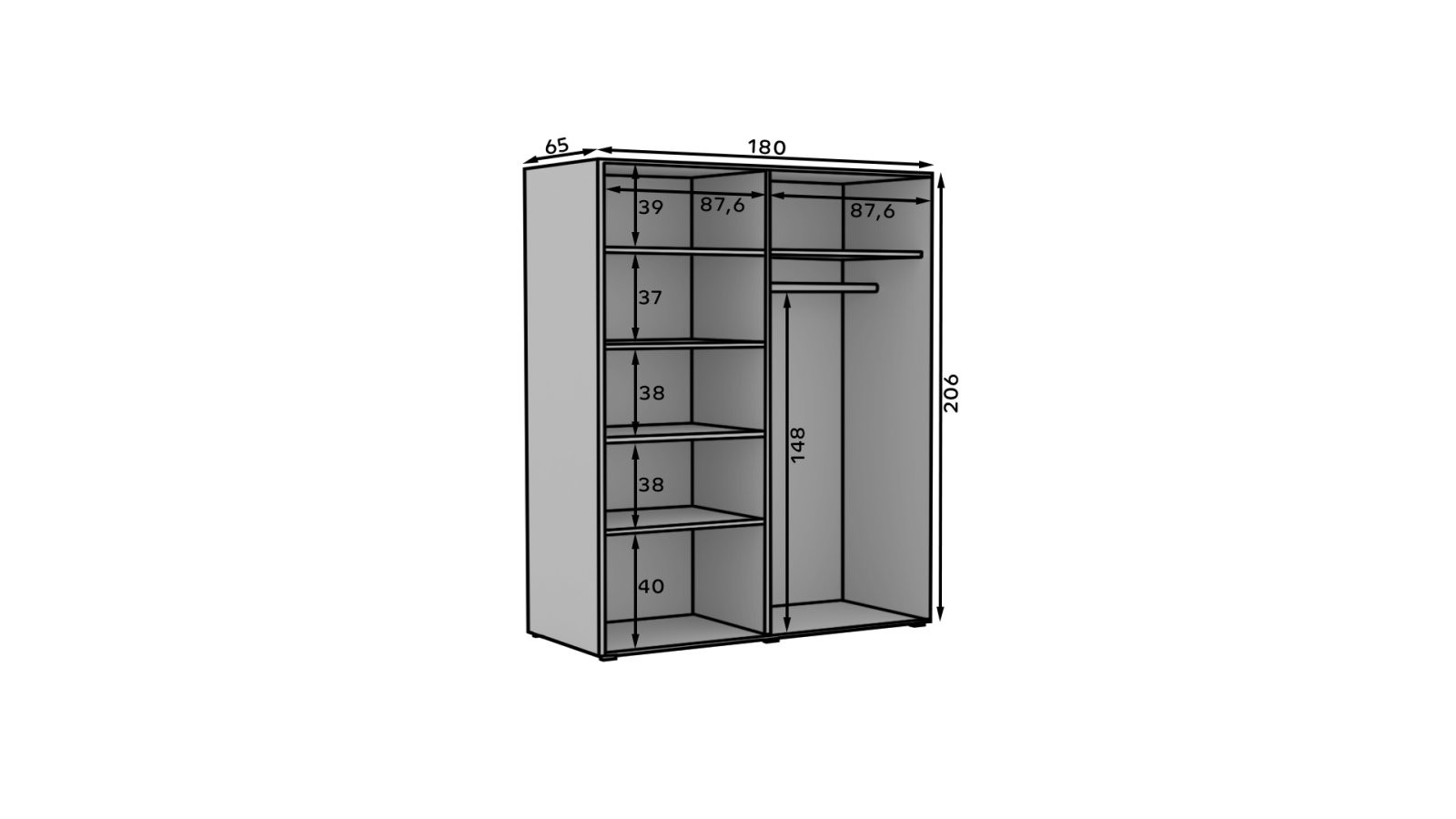- Dimenzije (Š x V x D): 180 cm x 206 cm x 65 cm