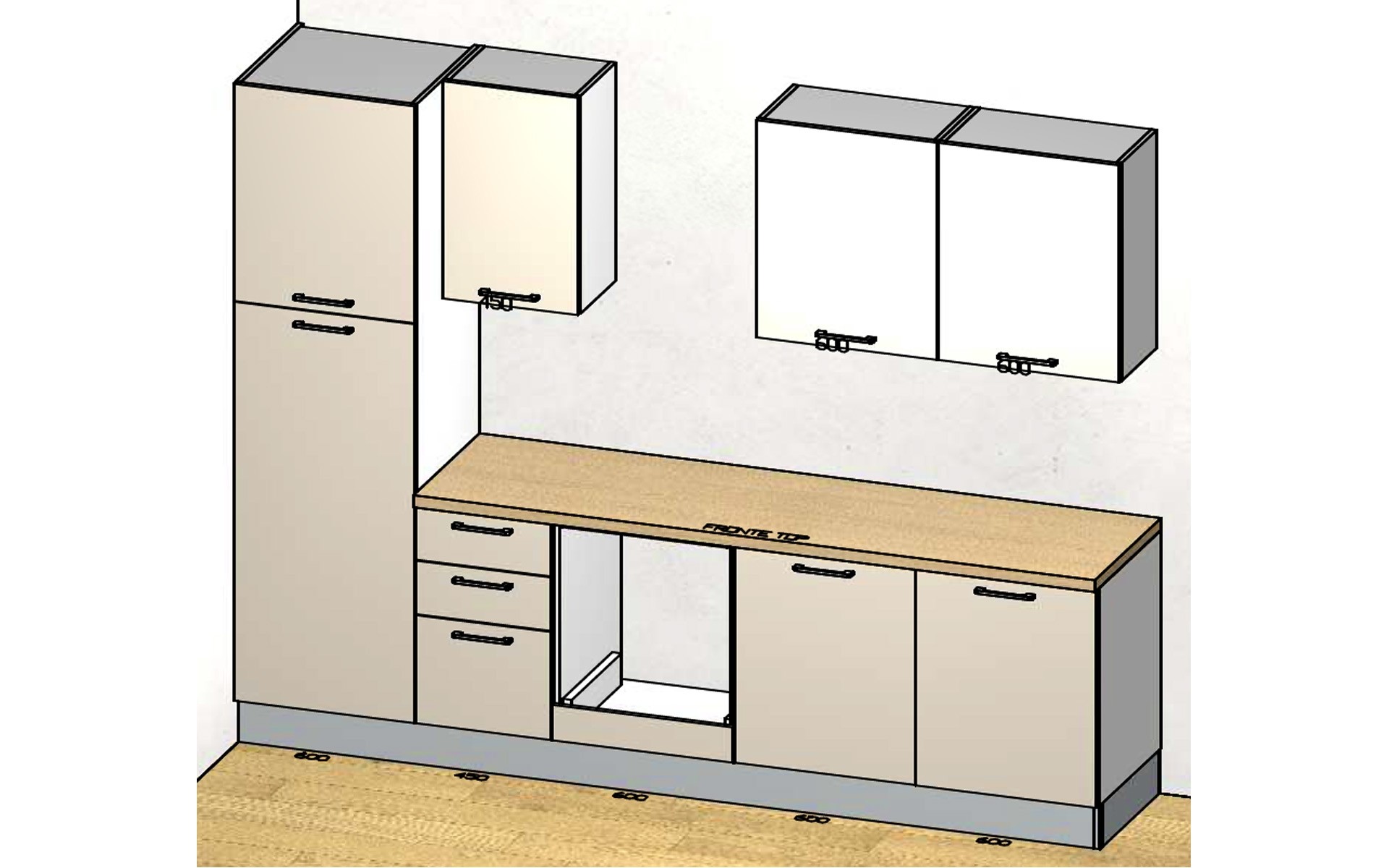 Prilikom sastavljanja vaše kuhinje iz snova možete birati između široke palete boja. Fronte su dostupne u različitim efektima i bojama: mat ili visoki sjaj, drvo ili jednobojne, strukturirane... Korpusi ormarića dolaze u dvije boje: bijeloj ili sivoj. Postolja su dostupna u visinama 10, 12 ili 15 cm. Radne ploče se mogu naručiti u različitim bojama.