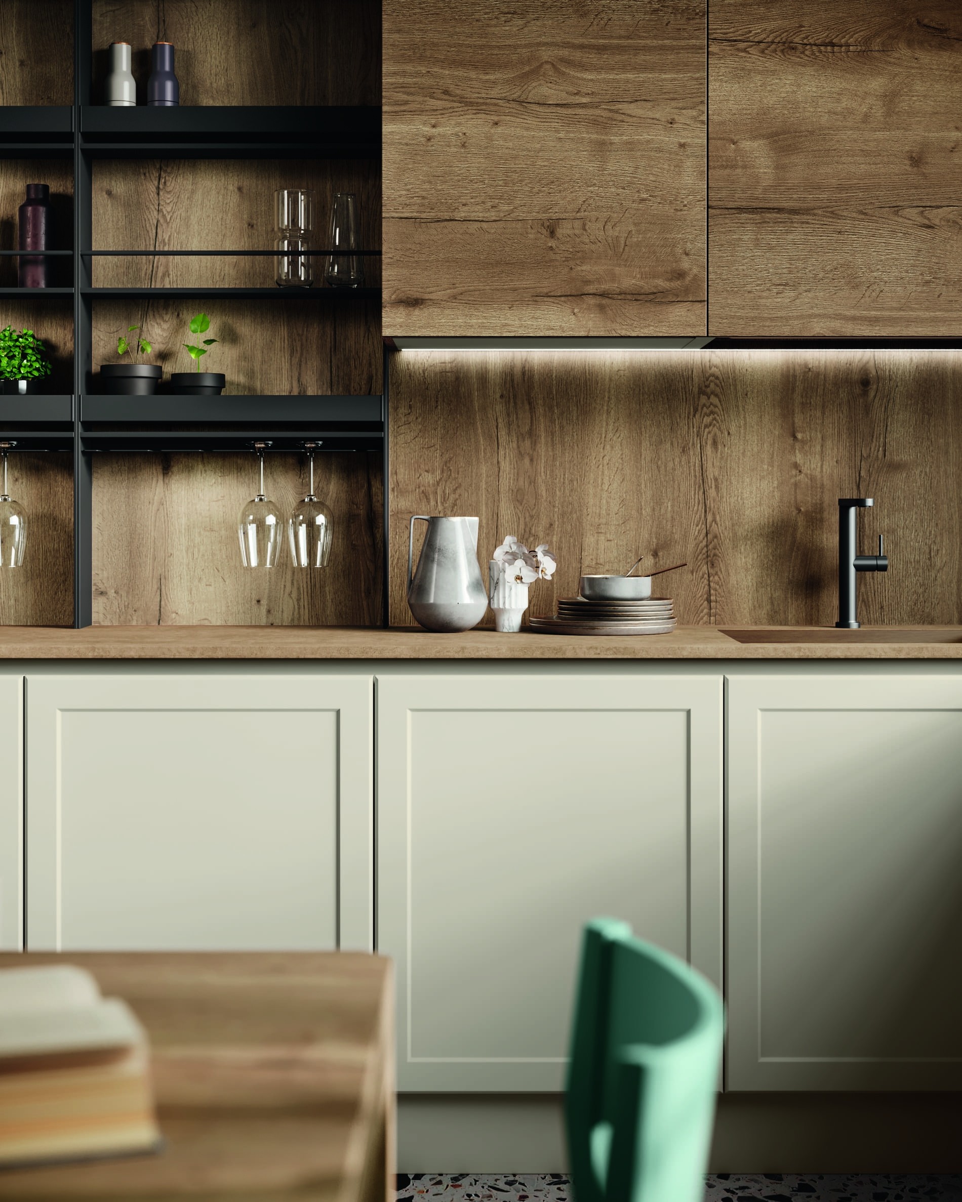 Kuhinja GIGLIO sa svojom kombinacijom različitih boja nudi bezvremenski izgled koji se uklapa u svaki dom. Vašem domu donosi toplinu i moderan stil. Kuhinja je proizvedena u Italiji i zahvaljujući kvalitetnim materijalima vrlo je izdržljiva. Oplemenjena iverica prekrivena je ekološki prihvatljivom PET folijom. Svi elementi imaju ugrađen mehanizam za tiho zatvaranje, što dodatno doprinosi dugotrajnosti kuhinje. Kombinacijom različitih elemenata omogućena je optimizacija prostora i povećana funkcionalnost. Kuhinja tako može postati središte vašeg doma u kojem ćete uživati.