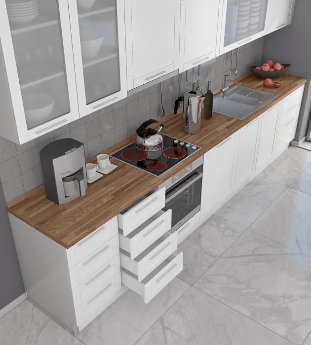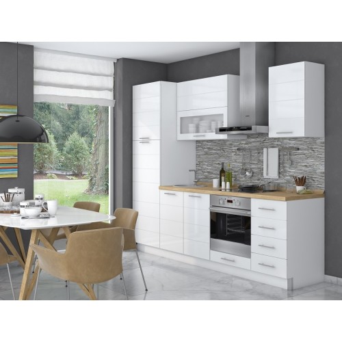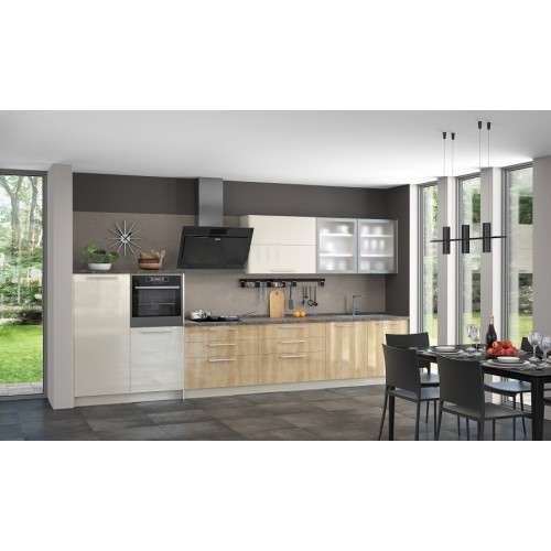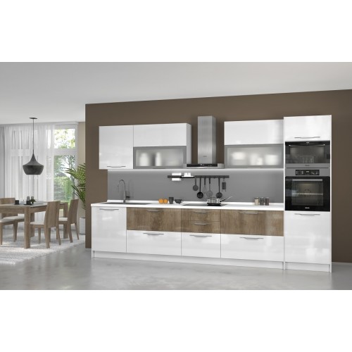 Brojni prostorni ormarići će vam nuditi prostor za skladištenje vašeg posuđa i pribora. Moderna kuhinja je potpuna ravnoteža između atraktivnosti, funkcionalnosti i elegancije. Globina donjih ormarića je 60 cm.
