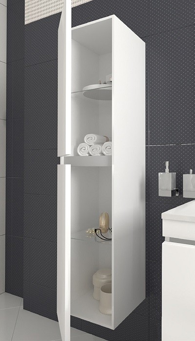 Cilj kupaonskog bloka je kombinacija ljepote, udobnosti i funkcionalnost. Jednostavan i klasičan oblik namještaja je uvijek pravo rješenje. Iza vrata ormarića se nalazi puno prostora za vaše stvari. Na policama ćete skladištiti svoju kozmetiku.