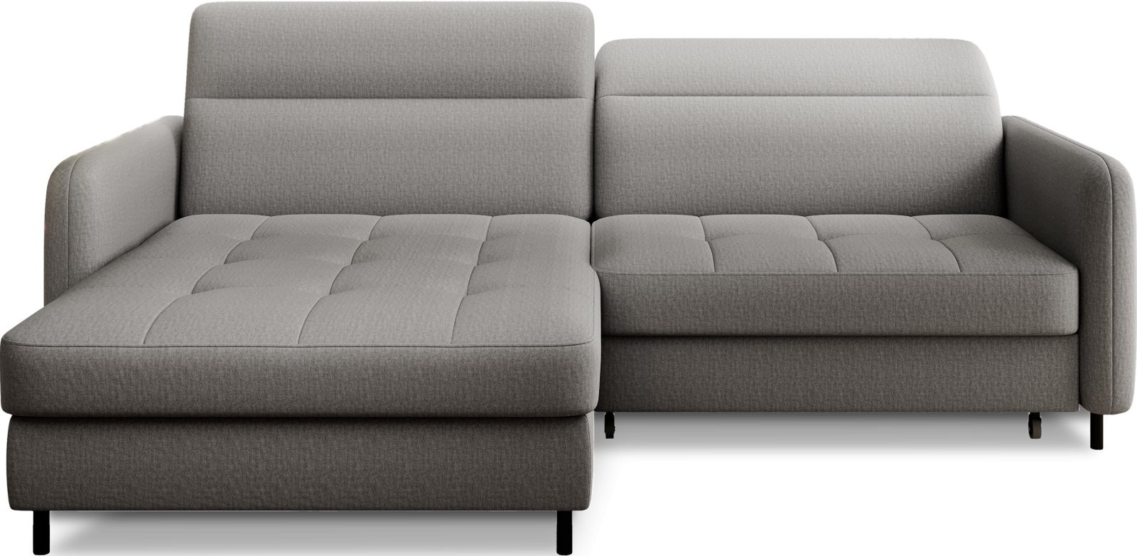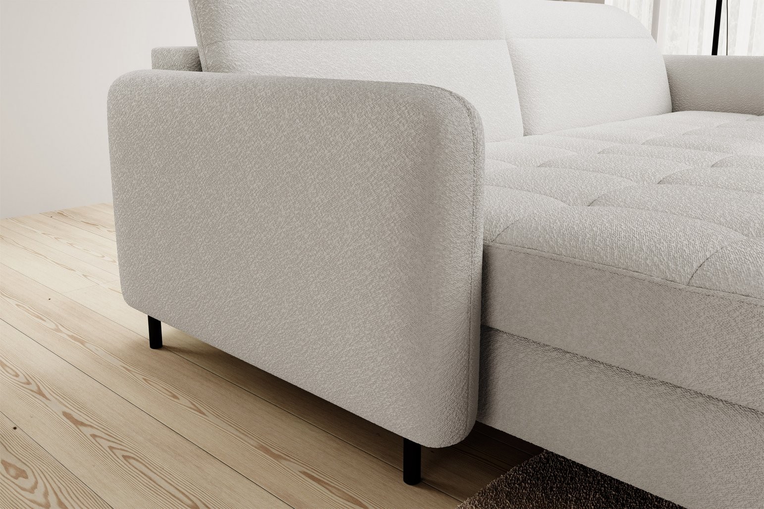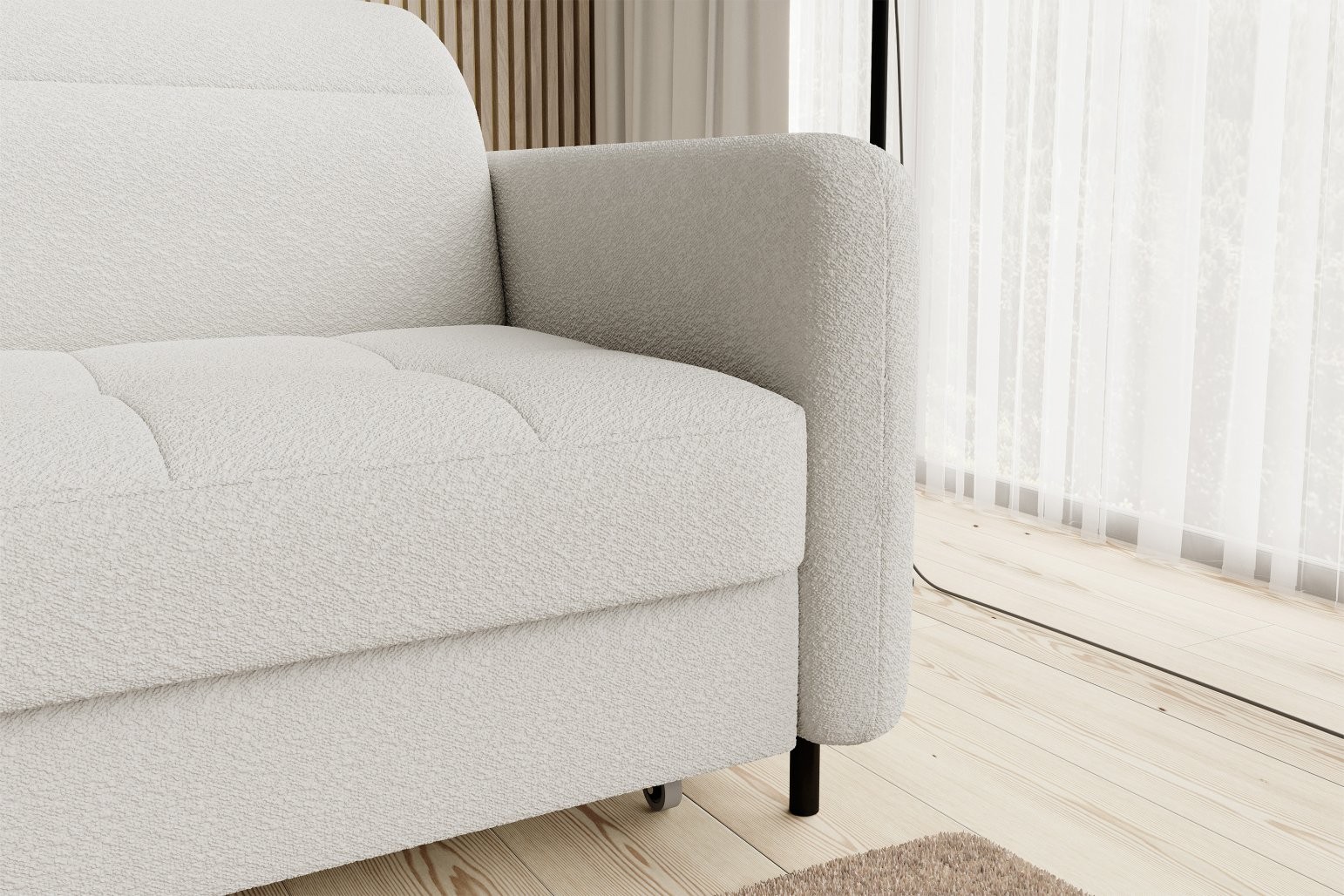 Tapecirana stražnja strana omogućuje postavljanje bilo gdje u prostoru, dok crne metalne noge i prošivena sjedala dodaju dozu sofisticiranosti. Garnitura je opremljena funkcijom spavanja s ležajem veličine 128x200 cm – idealno za opuštanje uz omiljene filmove ili kao dodatni krevet za goste.