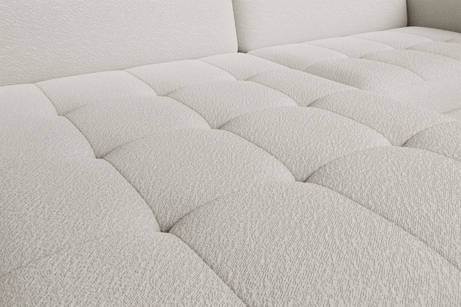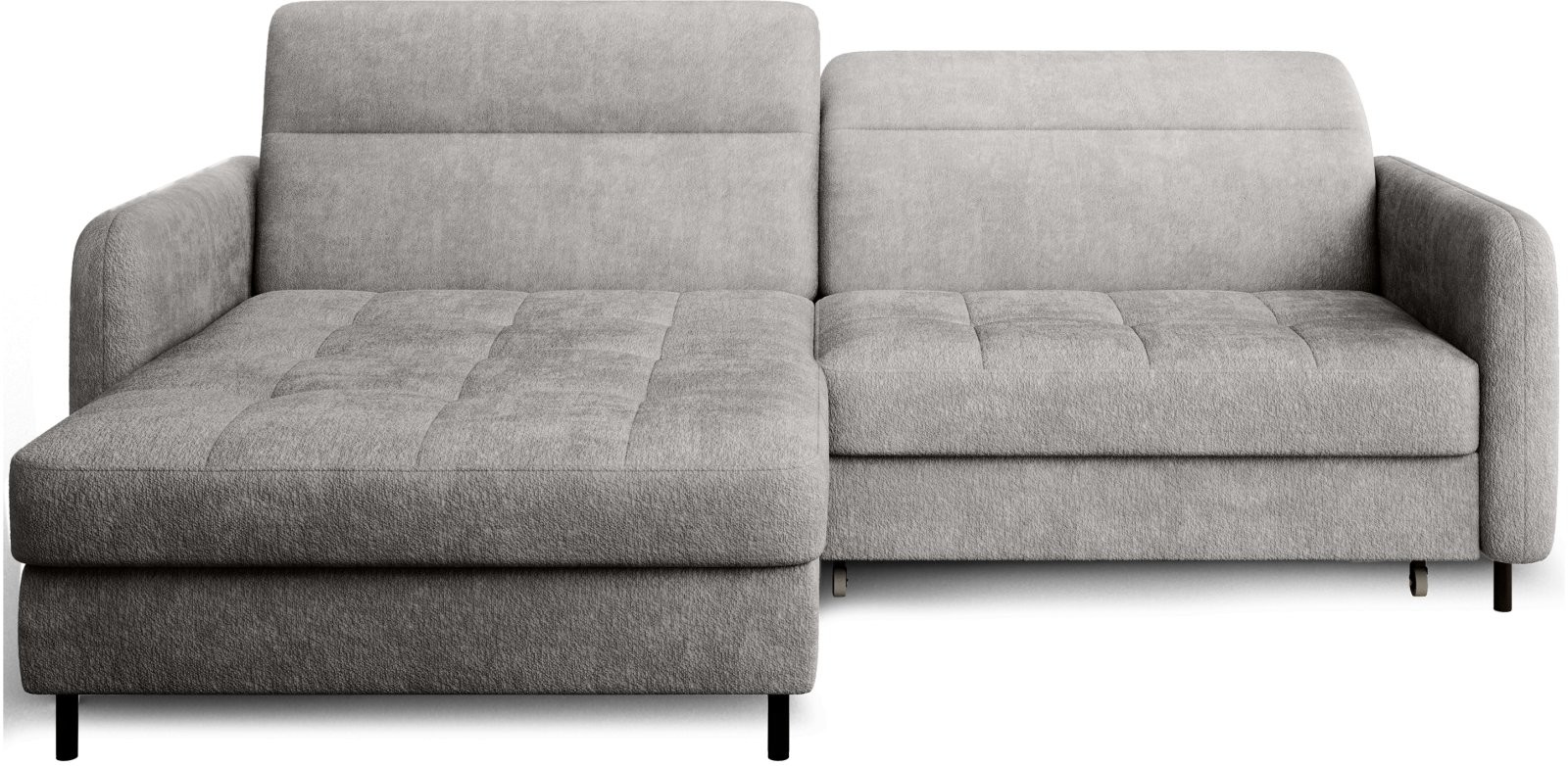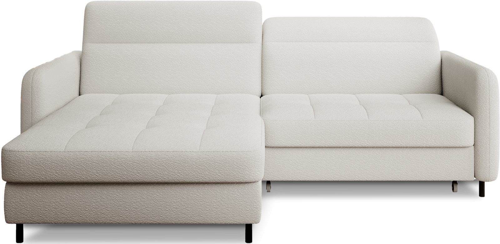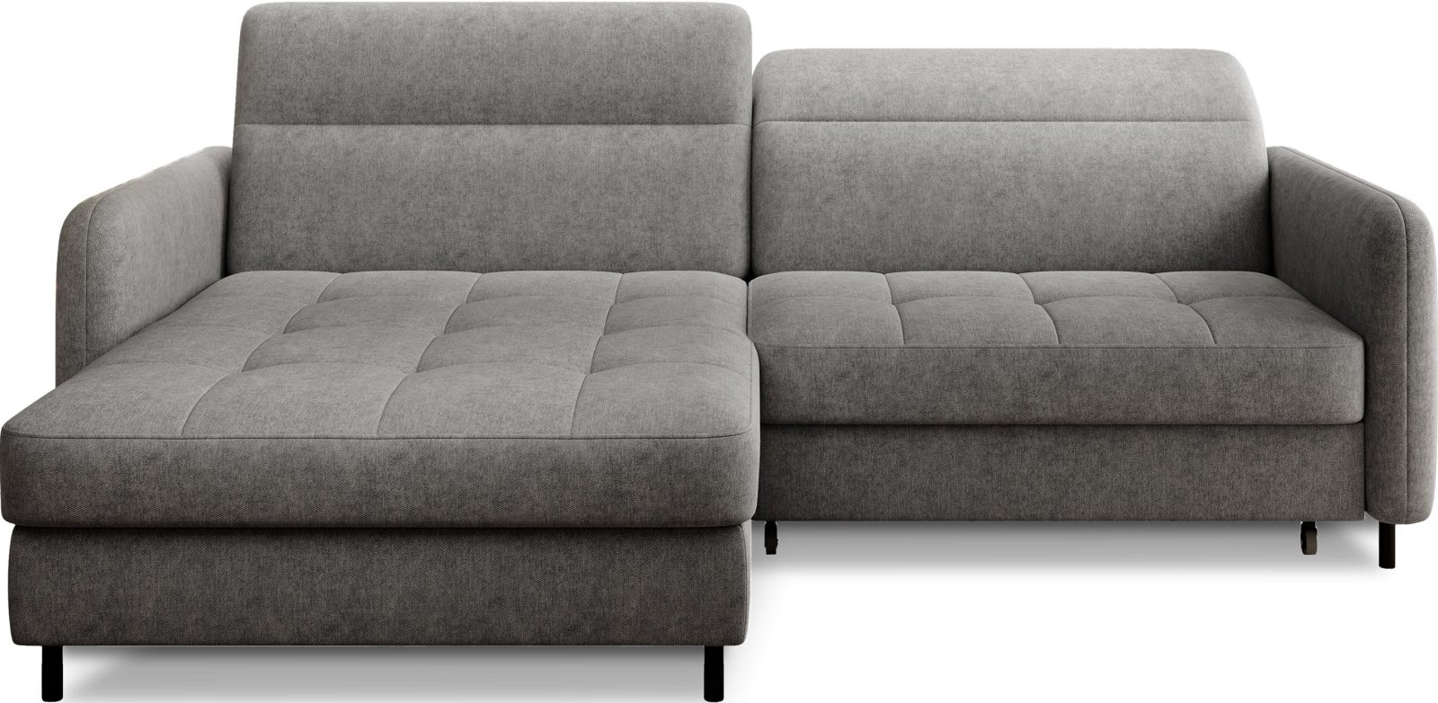 Tapecirana stražnja strana omogućuje postavljanje bilo gdje u prostoru, dok crne metalne noge i prošivena sjedala dodaju dozu sofisticiranosti. Garnitura je opremljena funkcijom spavanja s ležajem veličine 128x200 cm – idealno za opuštanje uz omiljene filmove ili kao dodatni krevet za goste.