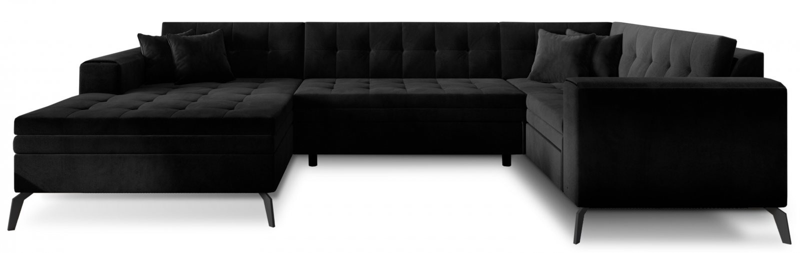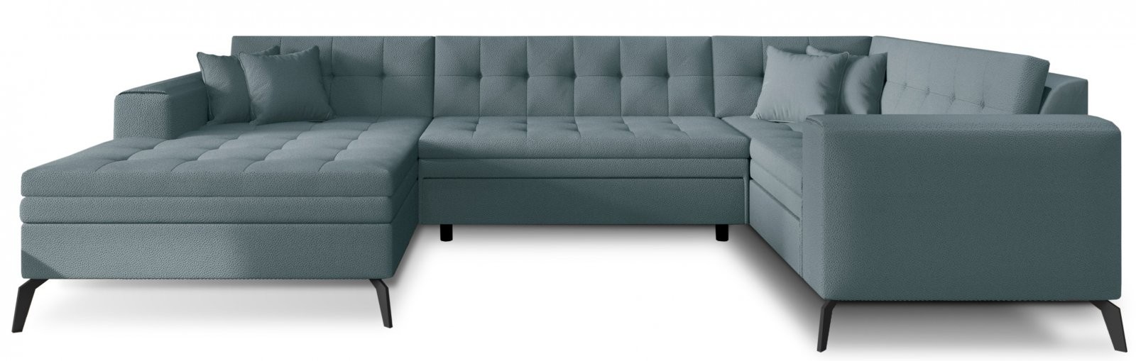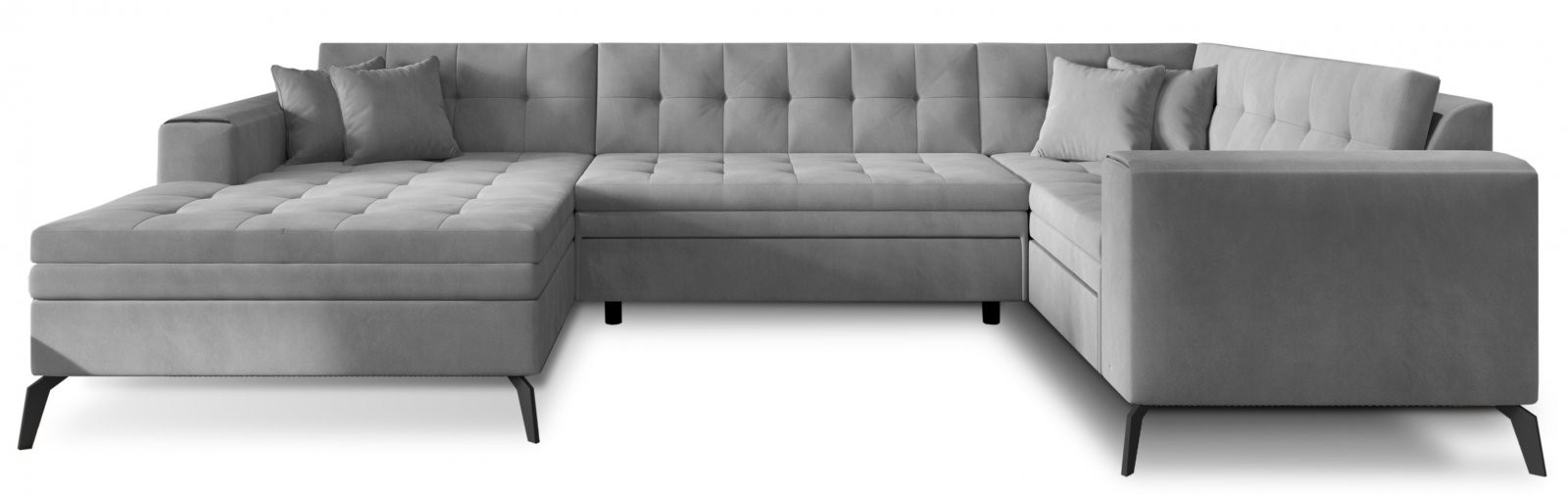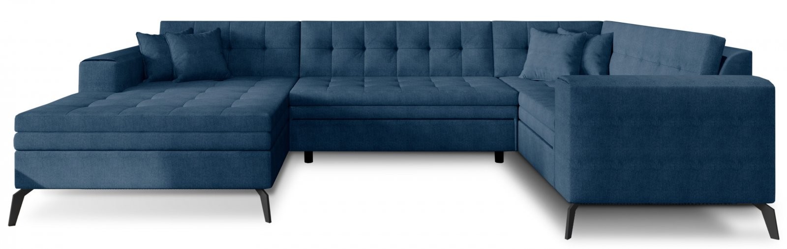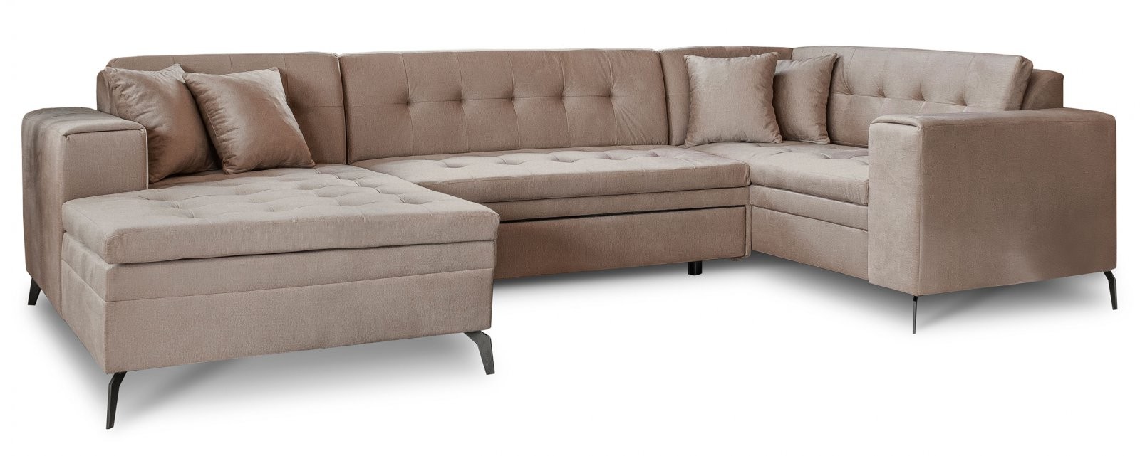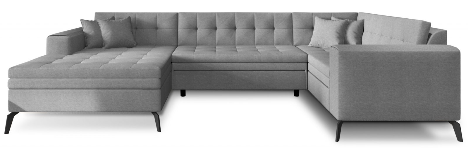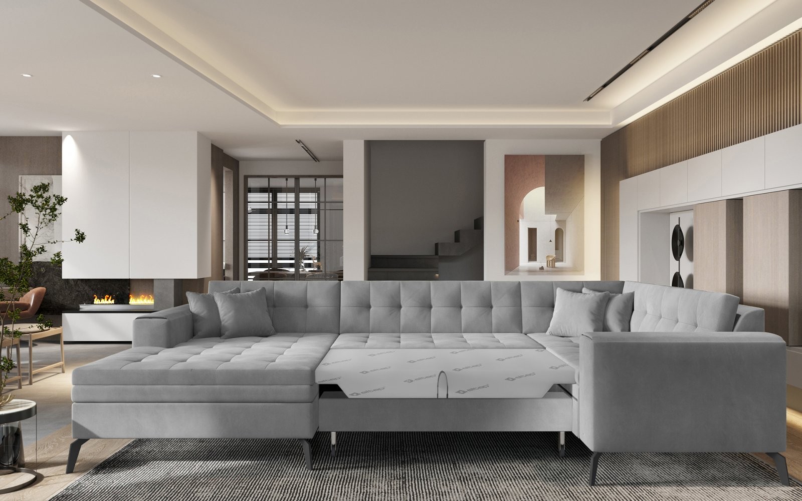 Kutna garnitura Montez je prostrana i izuzetno udobna garnitura u obliku slova U, savršena za veće dnevne boravke. Sa dimenzijama 340 x 180 x 93 cm nudi obilje prostora za odmor i druženje. Osim elegantnog izgleda i kvalitetnih materijala, jednostavno se pretvara u krevet uz pomoć DL automatskog mehanizma, čime se dobiva ležaj dimenzija 275 x 120 cm.