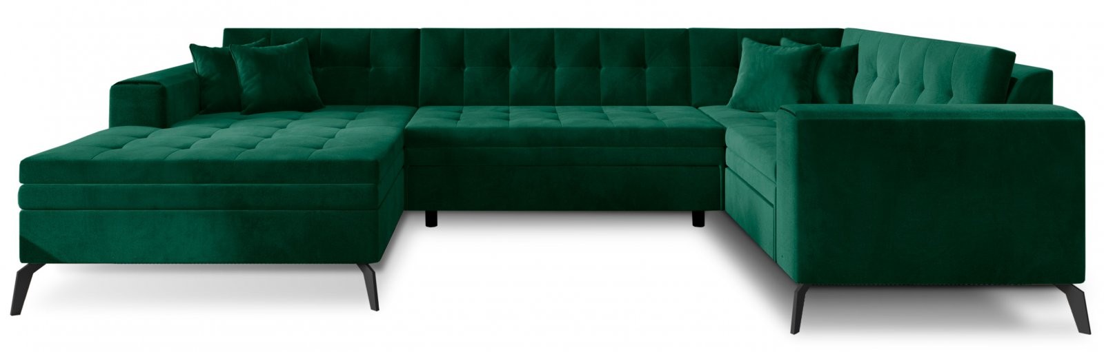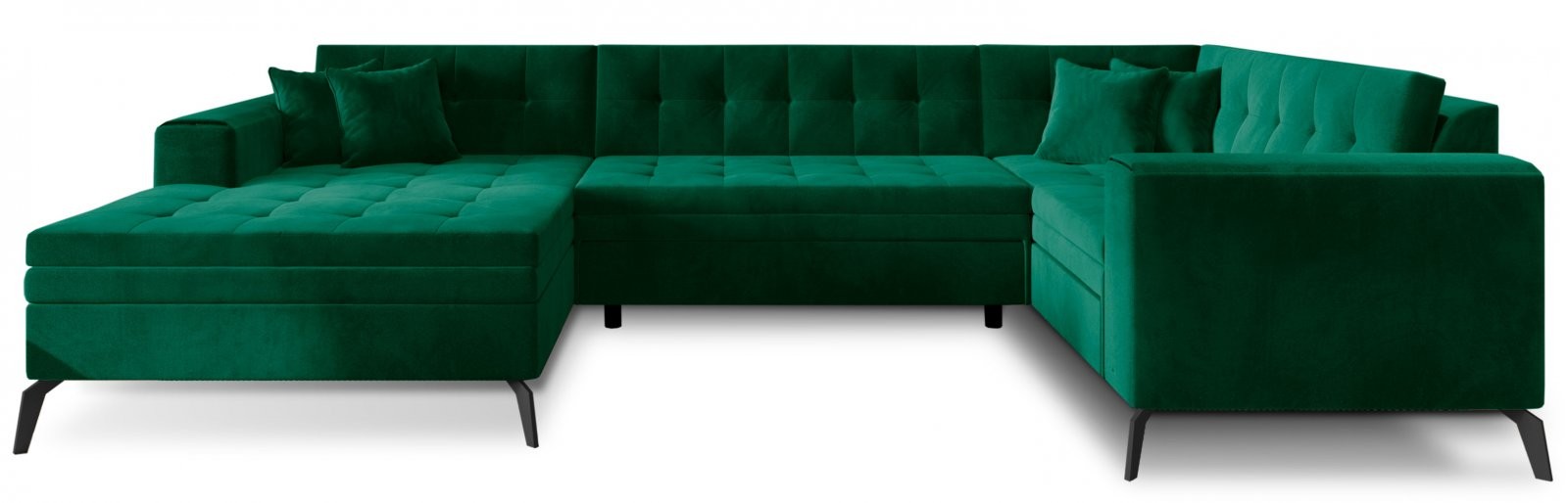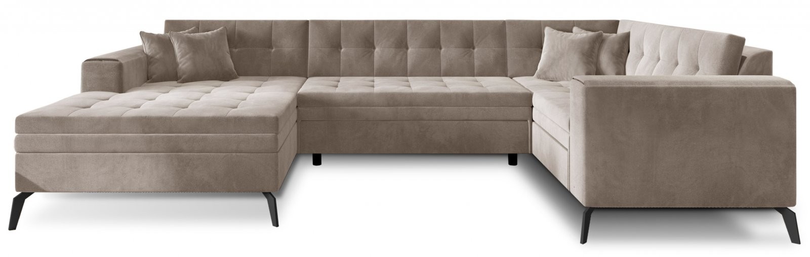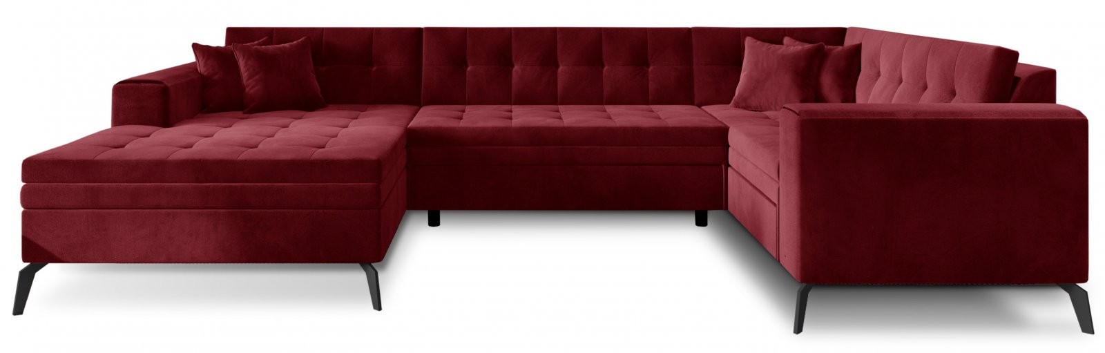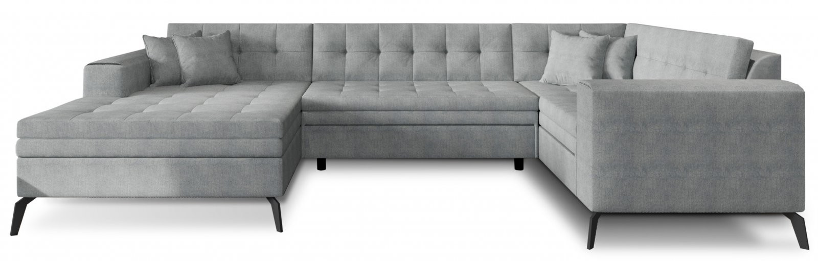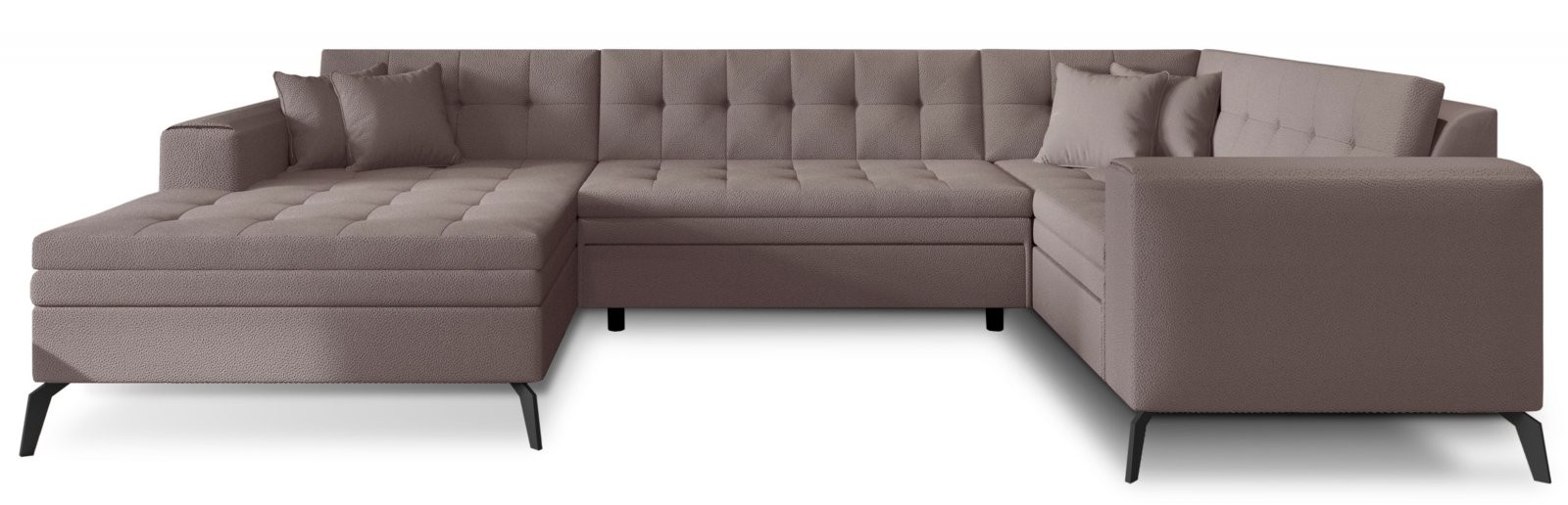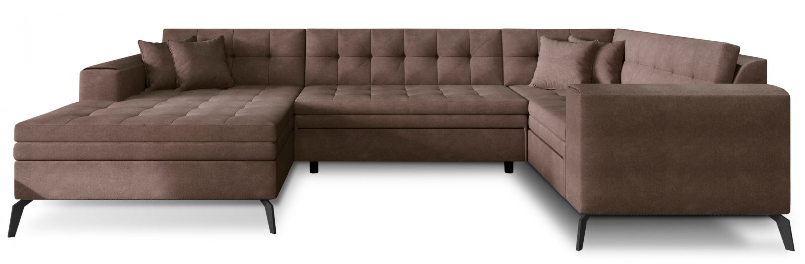 Kutna garnitura Montez je prostrana i izuzetno udobna garnitura u obliku slova U, savršena za veće dnevne boravke. Sa dimenzijama 340 x 180 x 93 cm nudi obilje prostora za odmor i druženje. Osim elegantnog izgleda i kvalitetnih materijala, jednostavno se pretvara u krevet uz pomoć DL automatskog mehanizma, čime se dobiva ležaj dimenzija 275 x 120 cm.