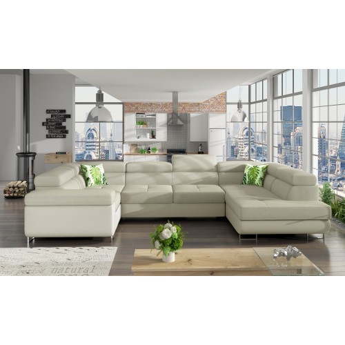 Kutna sjedeća garnitura IRIS je moderna garnitura napravljena iz tkanine, s dodatnim ležištem i sandukom. Ima podesiv naslon za glavu. Sjedeća garnitura dostupna je u lijevom i desnom kutu.