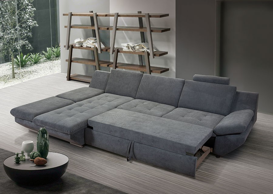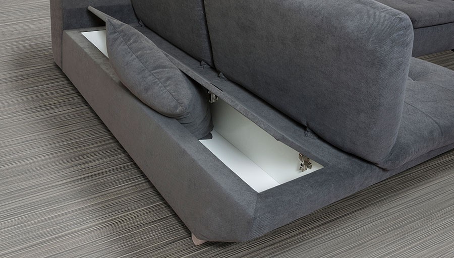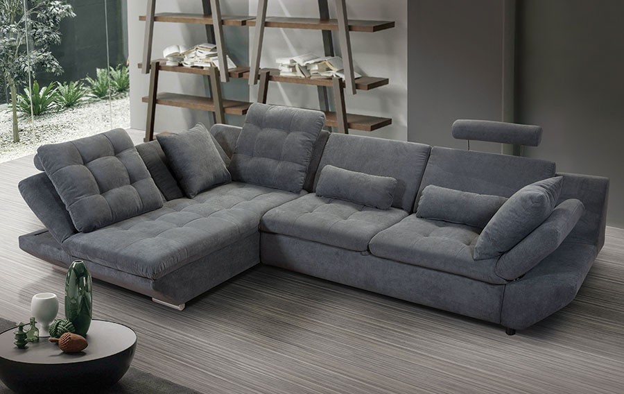 Kutna sjedeća garnitura IRIS je moderna garnitura napravljena iz tkanine, s dodatnim ležištem i sandukom. Ima podesiv naslon za glavu. Sjedeća garnitura dostupna je u lijevom i desnom kutu.