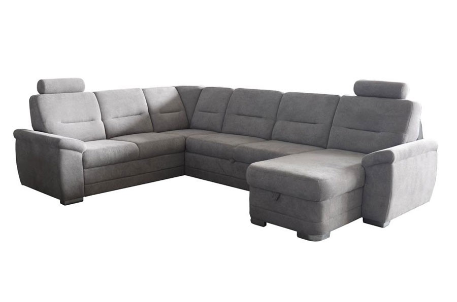 Kutna sjedeća garnitura KANO je napravljena iz tkanine s ležištem i sandukom. Ima podesiv naslon za glavu. Sjedeća garnitura dostupna je u lijevom i desnom kutu.