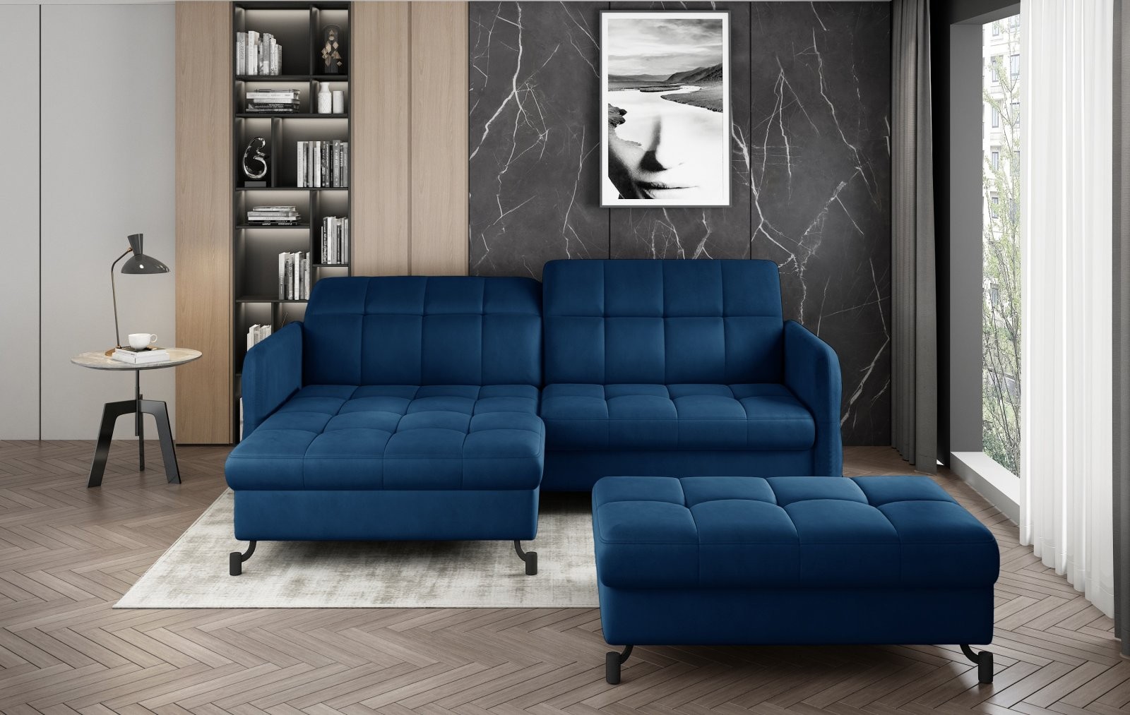 Kutni dnevni set Lorelle s tabureom spaja eleganciju, funkcionalnost i udobnost u jedan atraktivan komad namještaja. Ovaj moderan set savršen je izbor za manje dnevne boravke, nudeći brojne mogućnosti korištenja i prilagodbe.