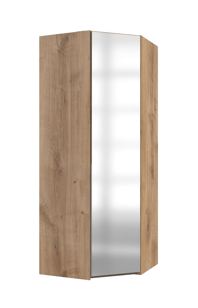 Kutni ormar NEW YORK specijalizirani je ormar njemačkog dizajna koji će se savršeno uklopiti u svaku spavaću sobu, bilo kao samostalni element ili kao dio većeg sklopa. Klasična boja prirodnog hrasta u kombinaciji s velikim ogledalom na prednjoj strani ormara omogućuje da se ormar savršeno uklopi u svaku prostoriju i jednostavno kombinira s drugim namještajem.