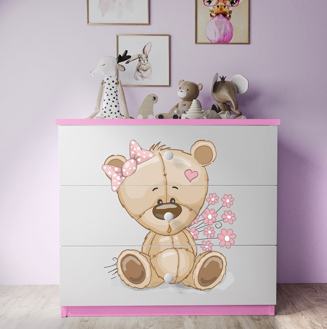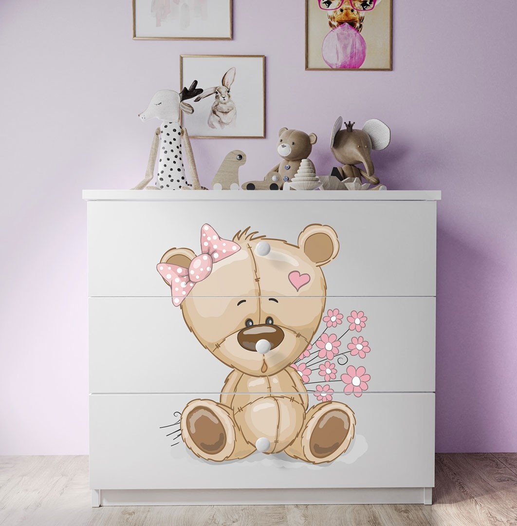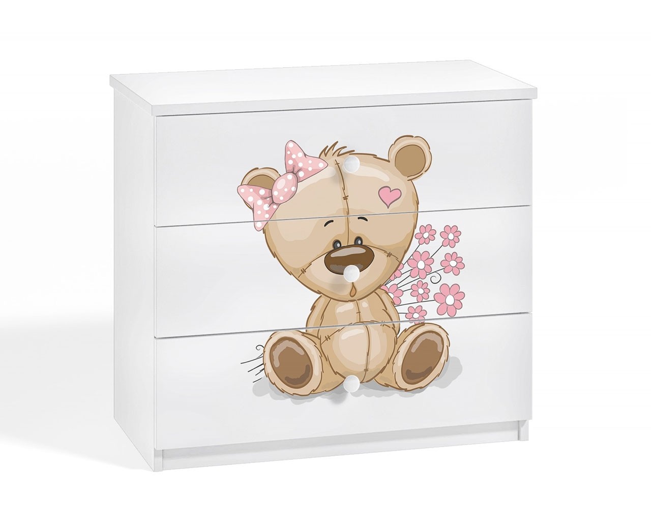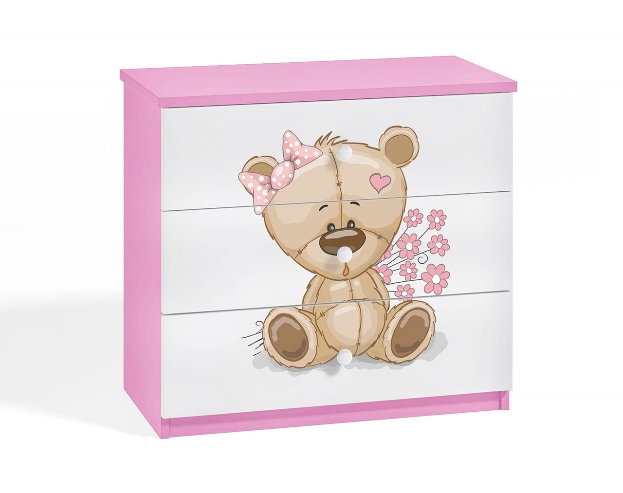 Uljepšajte dječju sobu simpatičnom DREAMY ladicom s motivom prijateljskog medvjeda! Ladičar ima 3 prostrane ladice u koje dijete može spremiti svoje čarape, modne dodatke i ostalu odjeću. Komoda je dio DREAMY kolekcije koja je dostupna u mnogo različitih boja i s različitim motivima, koji su prikladni i za dječake i za djevojčice!