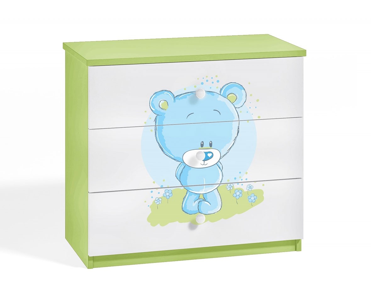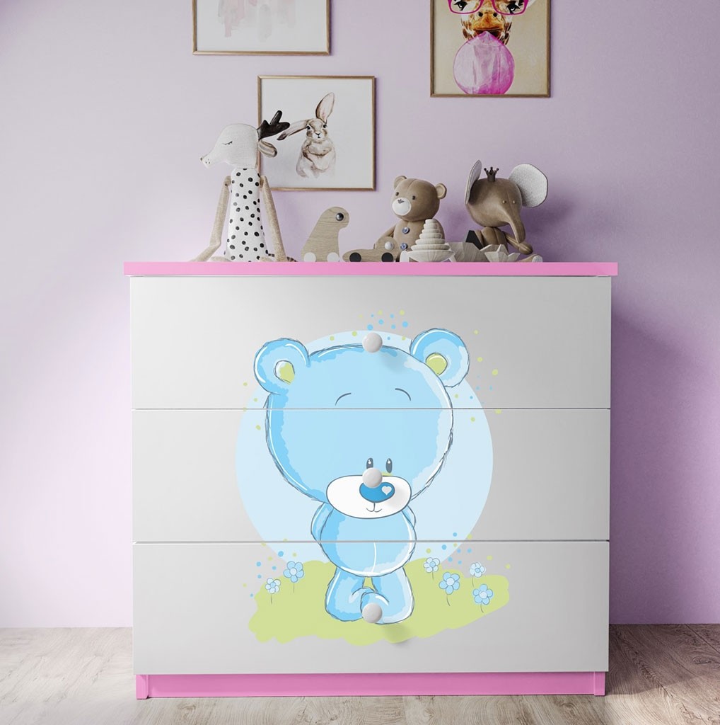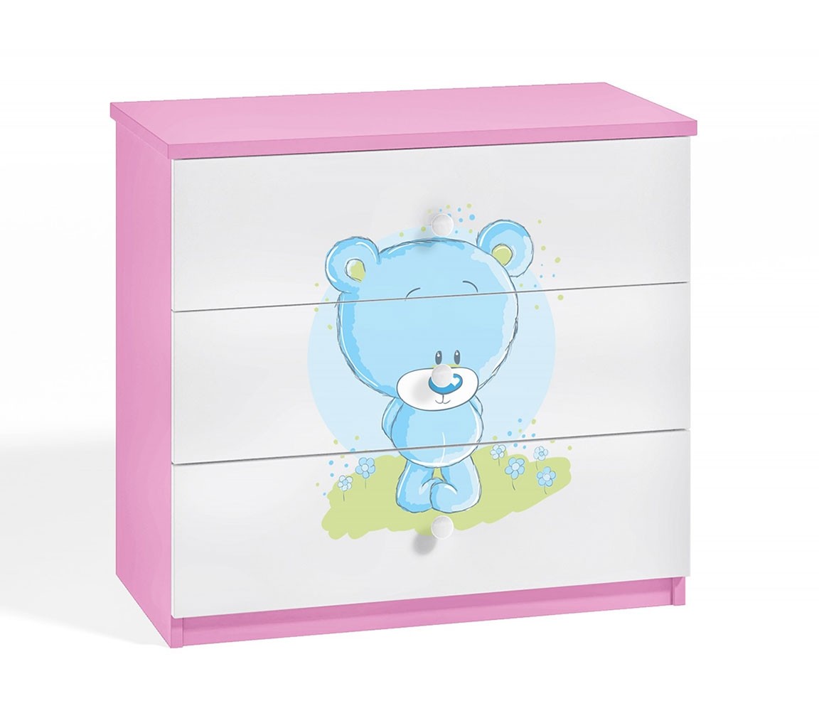 Opremite dječju sobu simpatičnom DREAMY ladicom s motivom plavog medvjeda, koja će oduševiti svako dijete! Ladičar ima tri prostrane ladice koje nude dovoljno mjesta za odlaganje odjeće i igračaka. Komoda je dio DREAMY dječje kolekcije koja je dostupna u četiri različite boje i s mnogo različitih motiva, koji su prikladni i za djevojčice i za dječake.