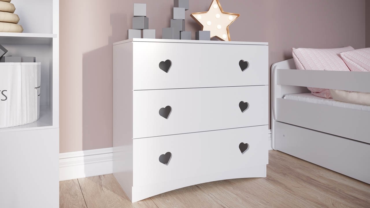 Opremite dječju ili omladinsku sobu s ladičarem JESSY koji se, zahvaljujući svom jednostavnom dizajnu i boji, savršeno uklapa u svaku prostoriju i donosi vrijedan dodatni prostor za pohranu. Ladičar se sastoji od tri prostrane ladice u koje možete spremiti čarape, donje rublje i razne modne dodatke. Da bi dječja soba uvijek bila lijepo uređena i organizirana!