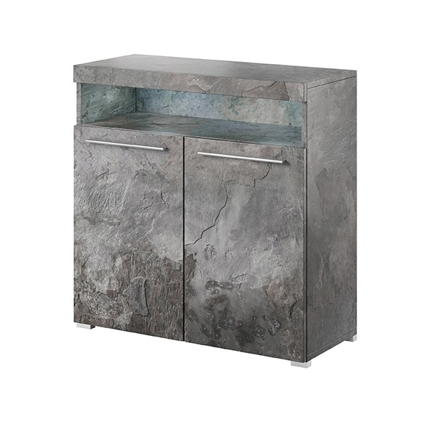 Mala komoda INDIA posebno je prikladna za male dnevne sobe. Ima moderan izgled i dostupna je u boji škriljavca. Komoda će poslužiti kao prostor za odlaganje knjiga, društvenih igara ili nakita.