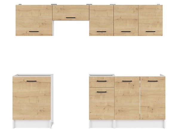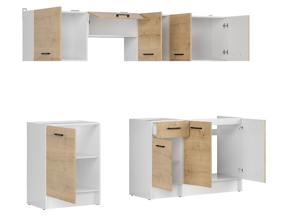Kuhinja SARA dostupna je u kombinaciji hrasta i bijele te je idealan izbor za sve koji traže praktičnu i pristupačnu kuhinju modernog dizajna. Ako je to ono što tražite, onda ste došli na pravo mjesto jer kuhinja Sara pruža iznimnu funkcionalnost po pristupačnoj cijeni.