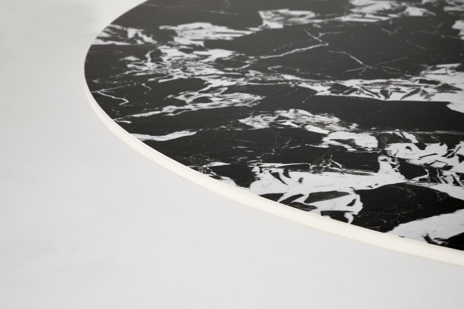Stol Beran s crnim mramornim pločama i metalnim okvirom za elegantnu blagovaonicu ili kuhinju. Prikladan za četiri osobe, idealan za suvremeni interijer.