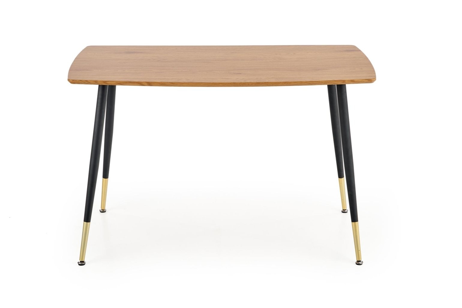 Stol Corin od laminiranog MDF-a s nogama od prašno obojenog čelika i kroma. Moderan dizajn s crnim i zlatnim elementima, prikladan za 4 osobe.