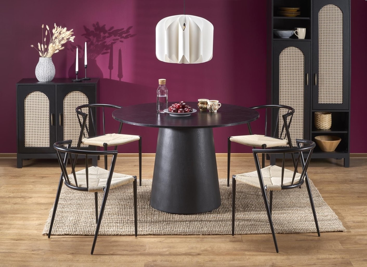 Stol Firen s crnom MDF površinom i modernim dizajnom odličan je izbor za suvremene interijere. Okrugli oblik stola za 5 osoba donosi eleganciju u svaki prostor.