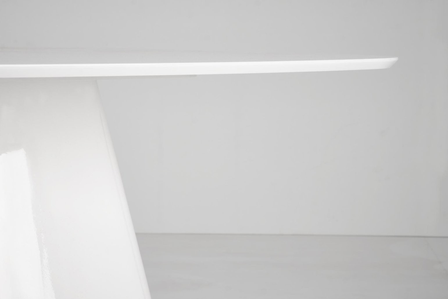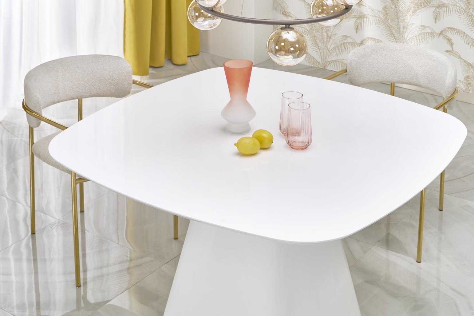 Stol Heron s visokim sjajem, lakiranom MDF površinom u bijeloj boji. Elegantna i moderna opcija za dnevne sobe, gdje je naglasak na stilu i profinjenosti.
