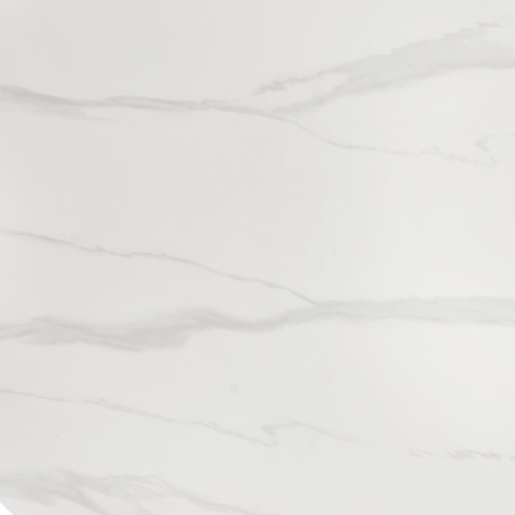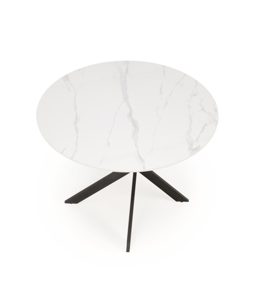 Stol Menor s sinteriranim kamenom i crnim metalnim nogama donosi moderni stil u blagovaonicu. Okrugla površina s bijelim mramoriranim uzorkom stvara elegantan izgled.
