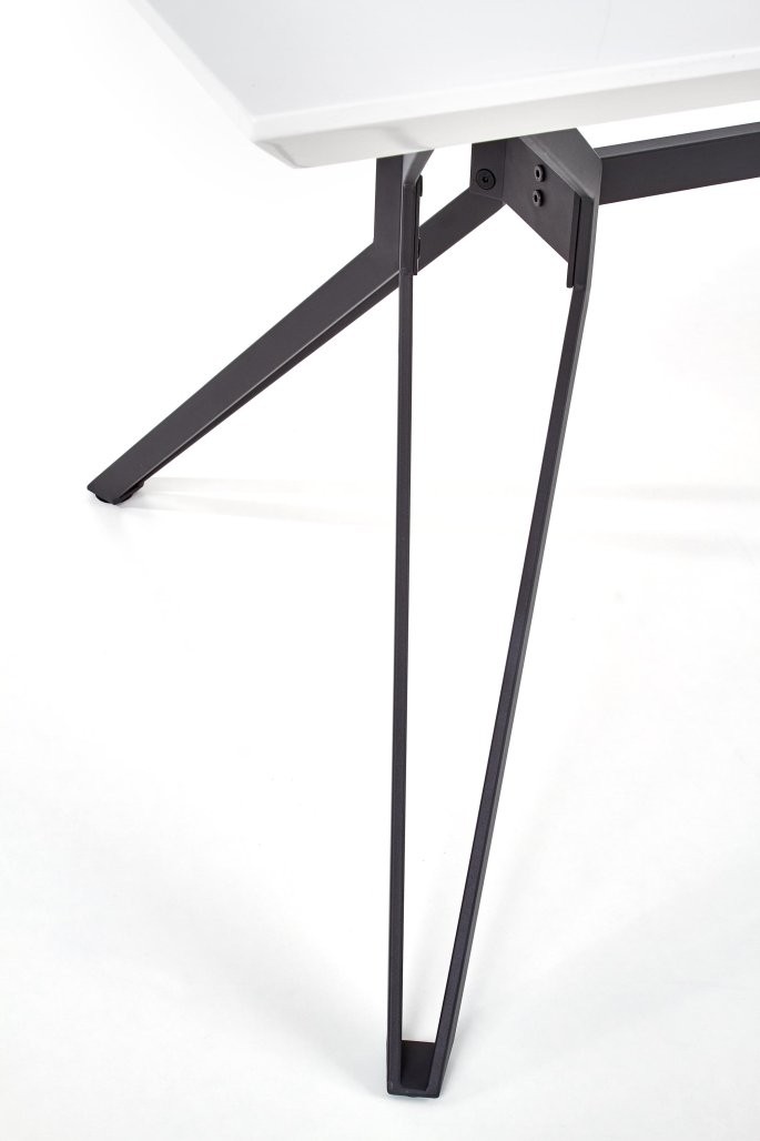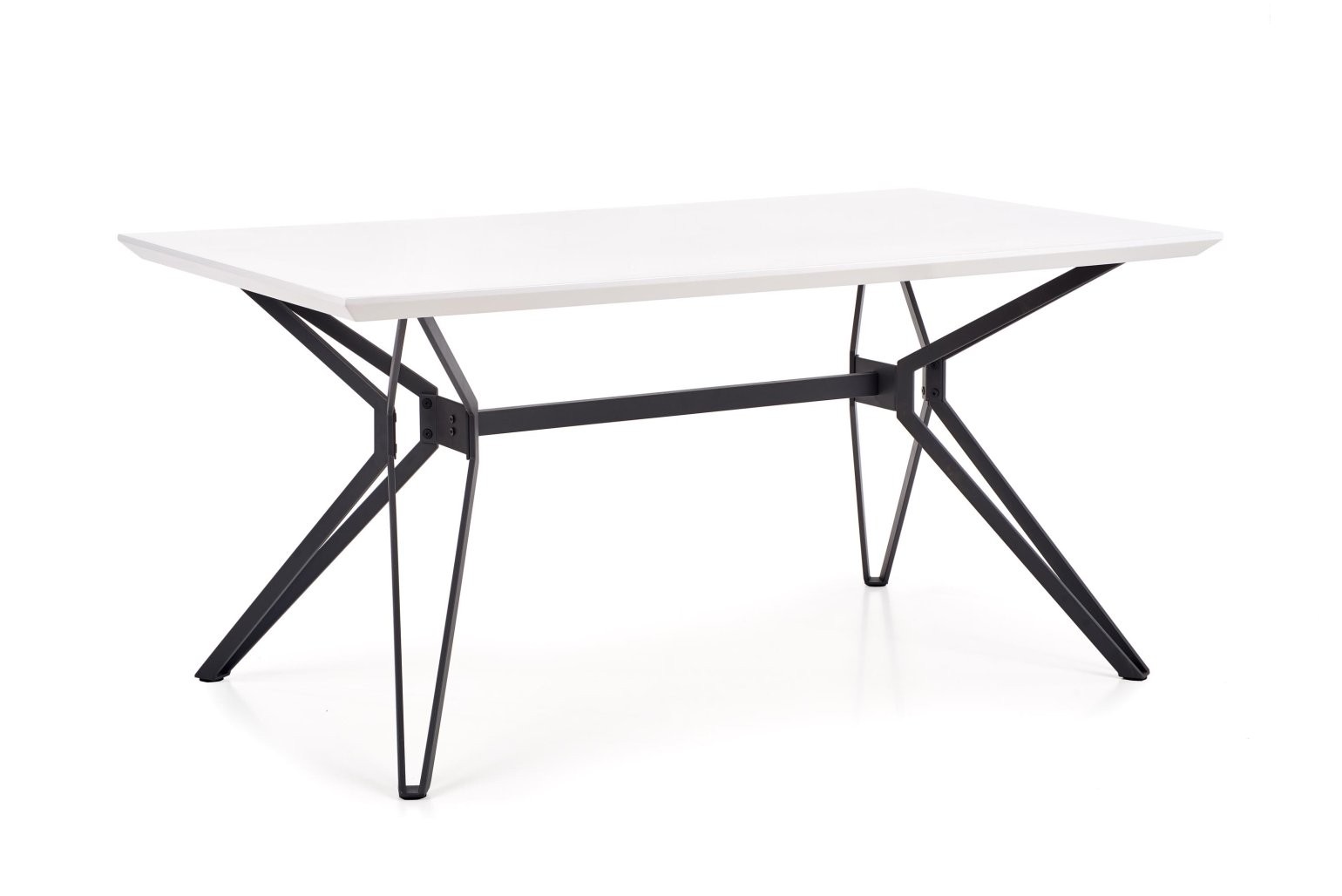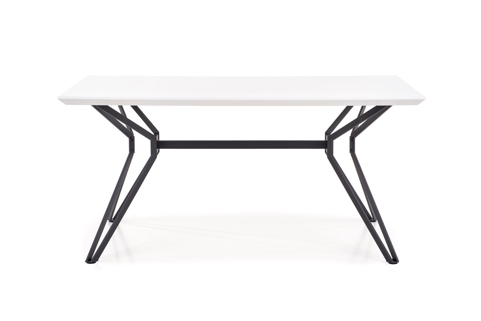 Stol Rora u jednostavnom modernom stilu s pravokutnom površinom od bijelog lakiranog MDF-a i praškasto lakiranim crnim nogama. Pogodan za do 6 osoba, idealan za moderne blagovaonice.