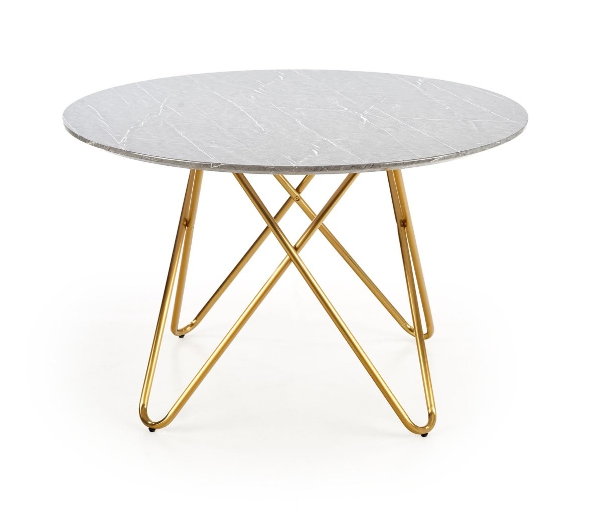 Stol Terlin s okruglom sivom mramornom površinom i zlatnim metalnim nogama donosi prestižan izgled. Savršen izbor za moderne blagovaonice i elegantno posluživanje za 6 osoba.