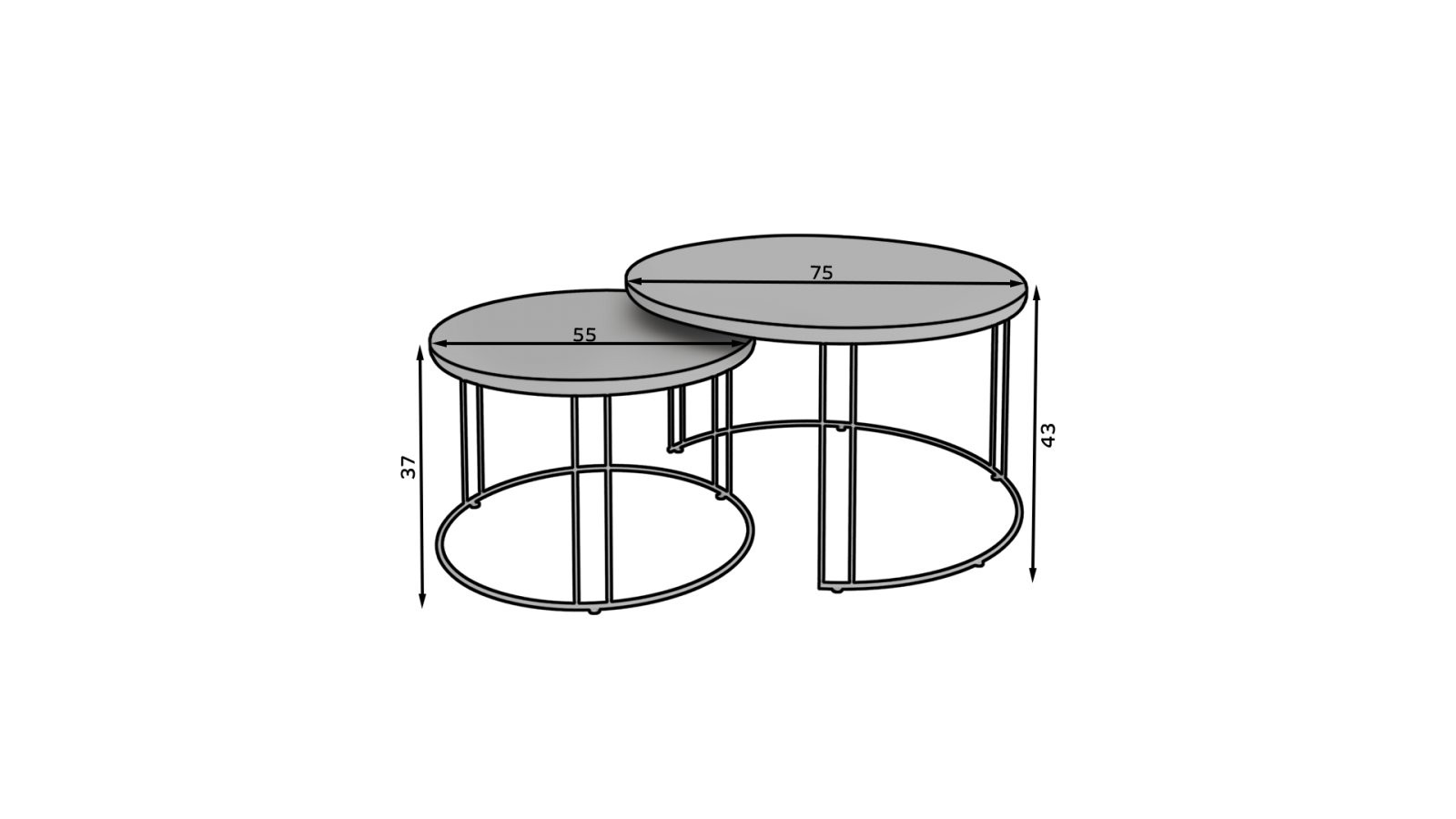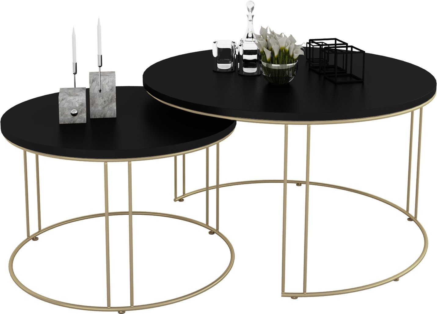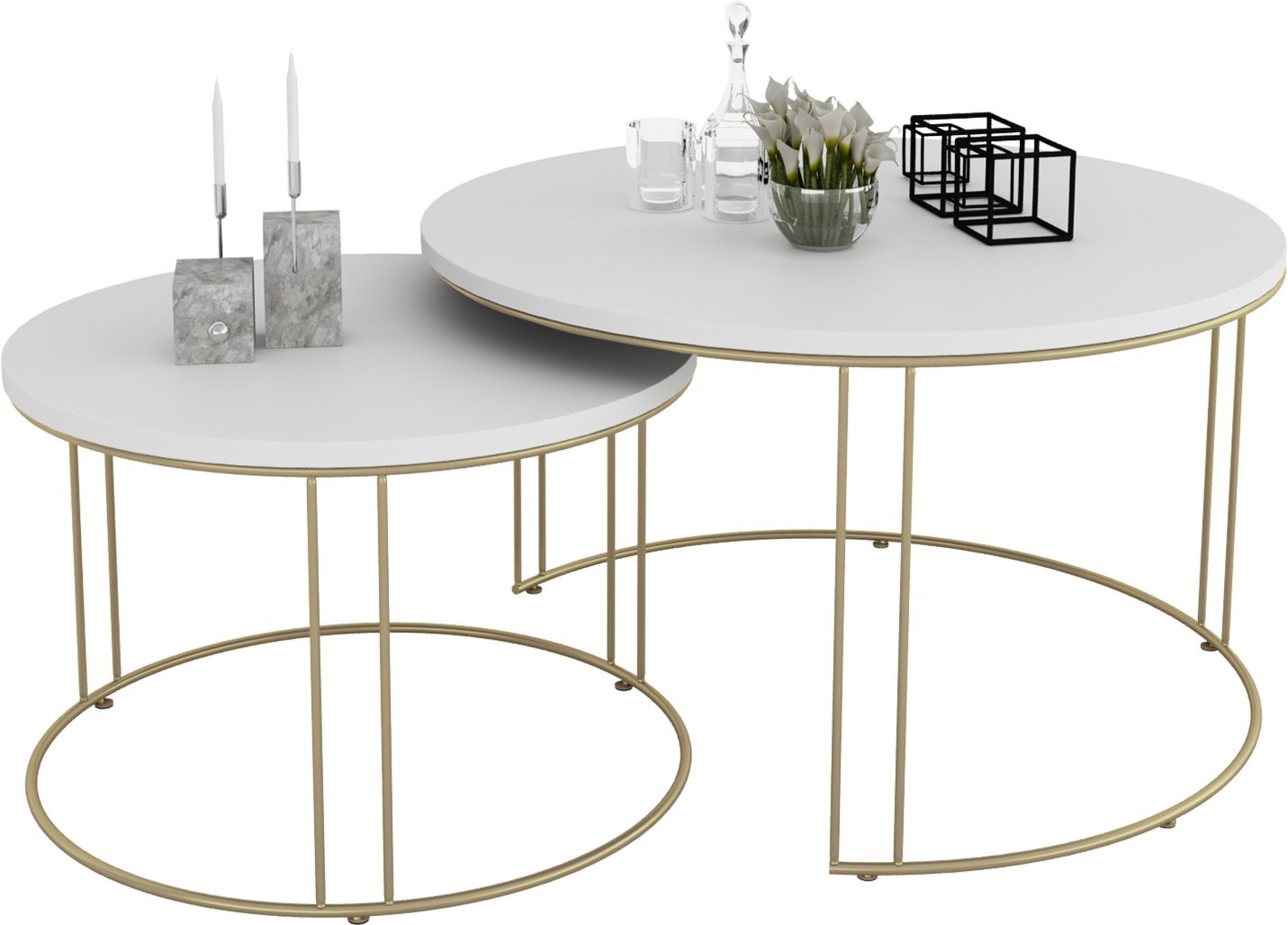 Set uključuje dva stolića različitih dimenzija koje možete slobodno kombinirati ili koristiti odvojeno. Njihova svestranost omogućuje korištenje kao klupski stolići, pomoćni stolići uz sofu ili čak kao dekorativni element u prostoru.