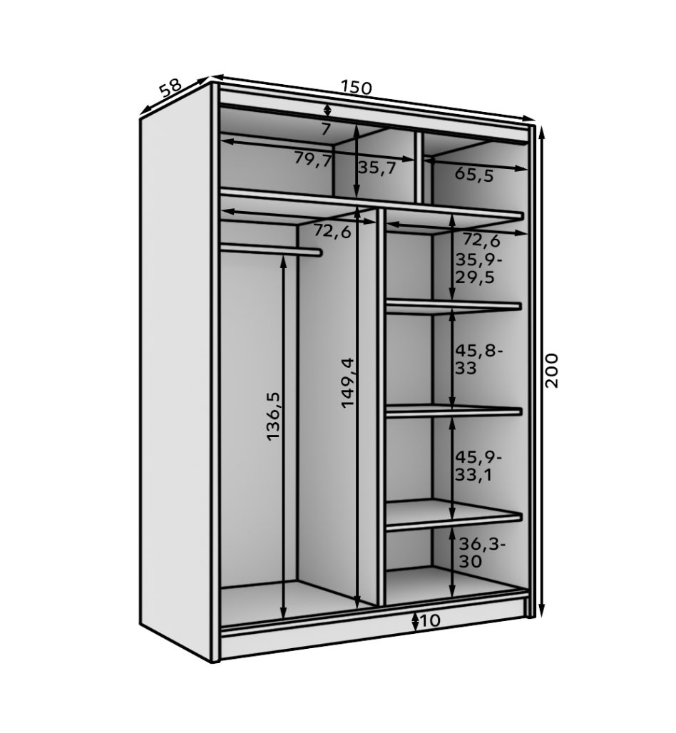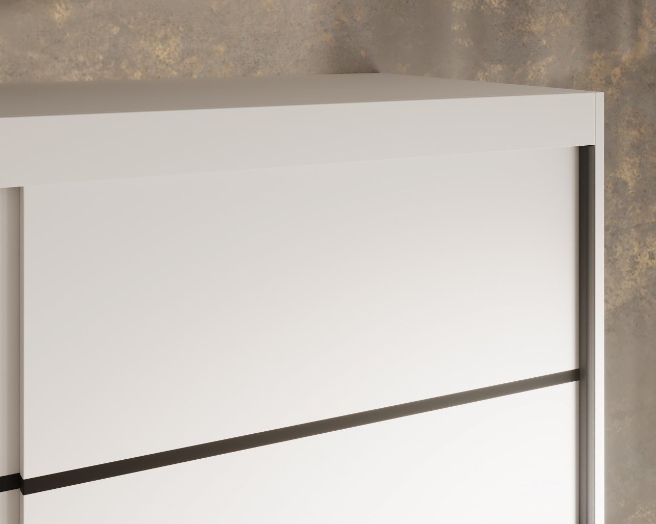 Moderna klizna garderoba Cardi 150 s ogledalom idealan je izbor za sve koji cijene eleganciju, funkcionalnost i suvremeni dizajn. S elegantnim kombinacijama boja i kvalitetnom izradom, savršeno se uklapa u svaki prostor i unosi dozu sofisticiranosti.