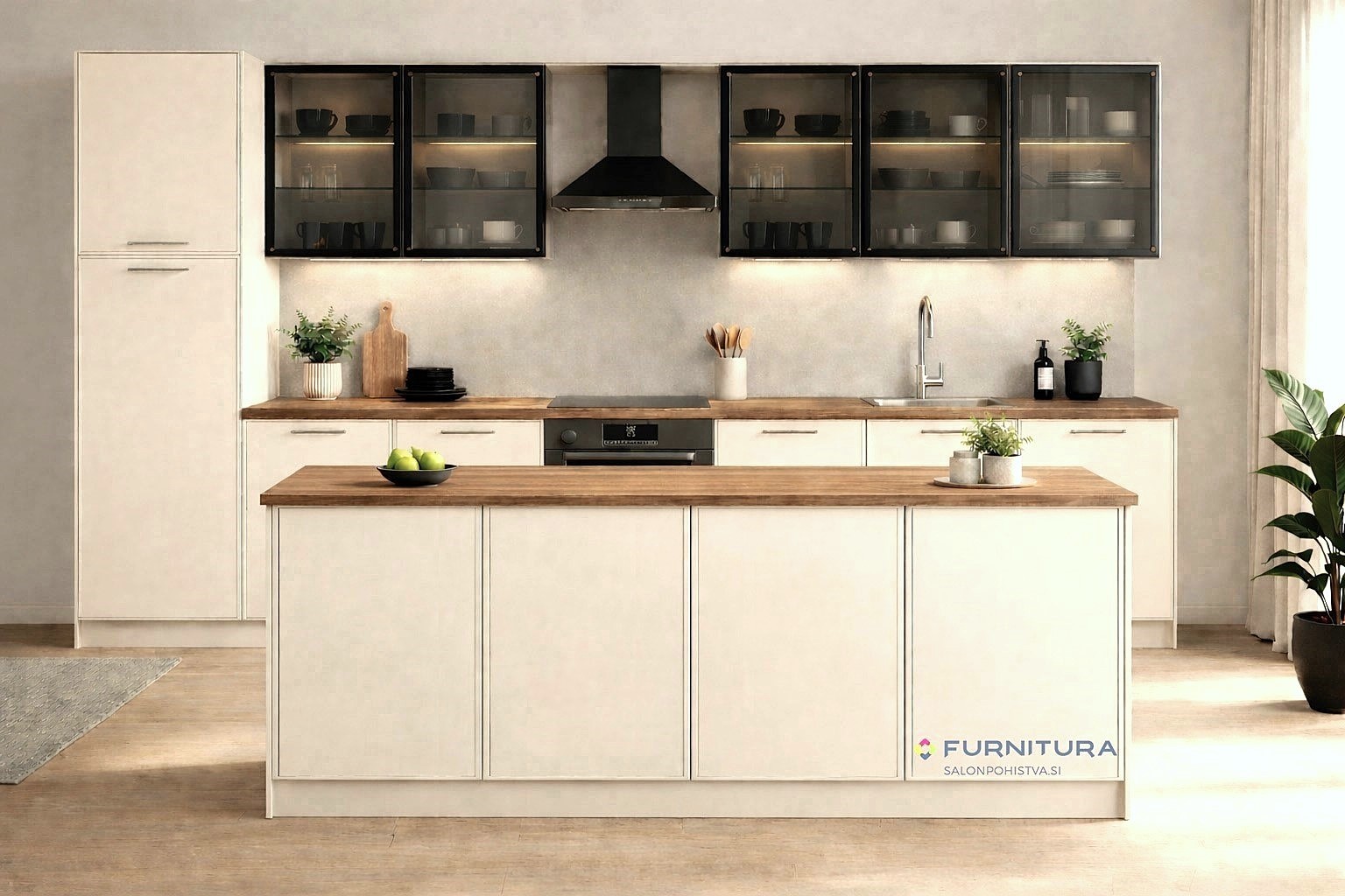 Moderna kuhinja Opera s otokom odličan je izbor za sve koji žele kuhinju s puno radne površine i obiljem prostora za pohranu. Izrađena je od kvalitetnih materijala i opremljena mehanizmom tihog zatvaranja, što osigurava jednostavno, ugodno i bezbrižno svakodnevno korištenje. Njezin moderan izgled unijet će u vaš dom novu dimenziju elegancije i profinjenosti.