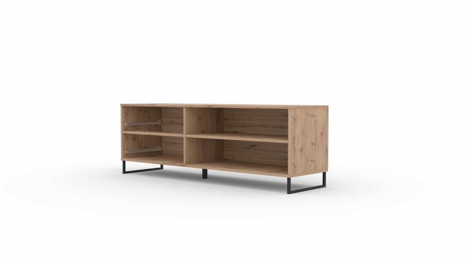 TV komoda ARIA spaja jednostavnost, funkcionalnost i moderan dizajn, što je čini savršenim izborom za svaki dnevni boravak. Elegantna kombinacija boje hrasta Artisan i crne savršeno se uklapa u klasične i suvremene interijere.