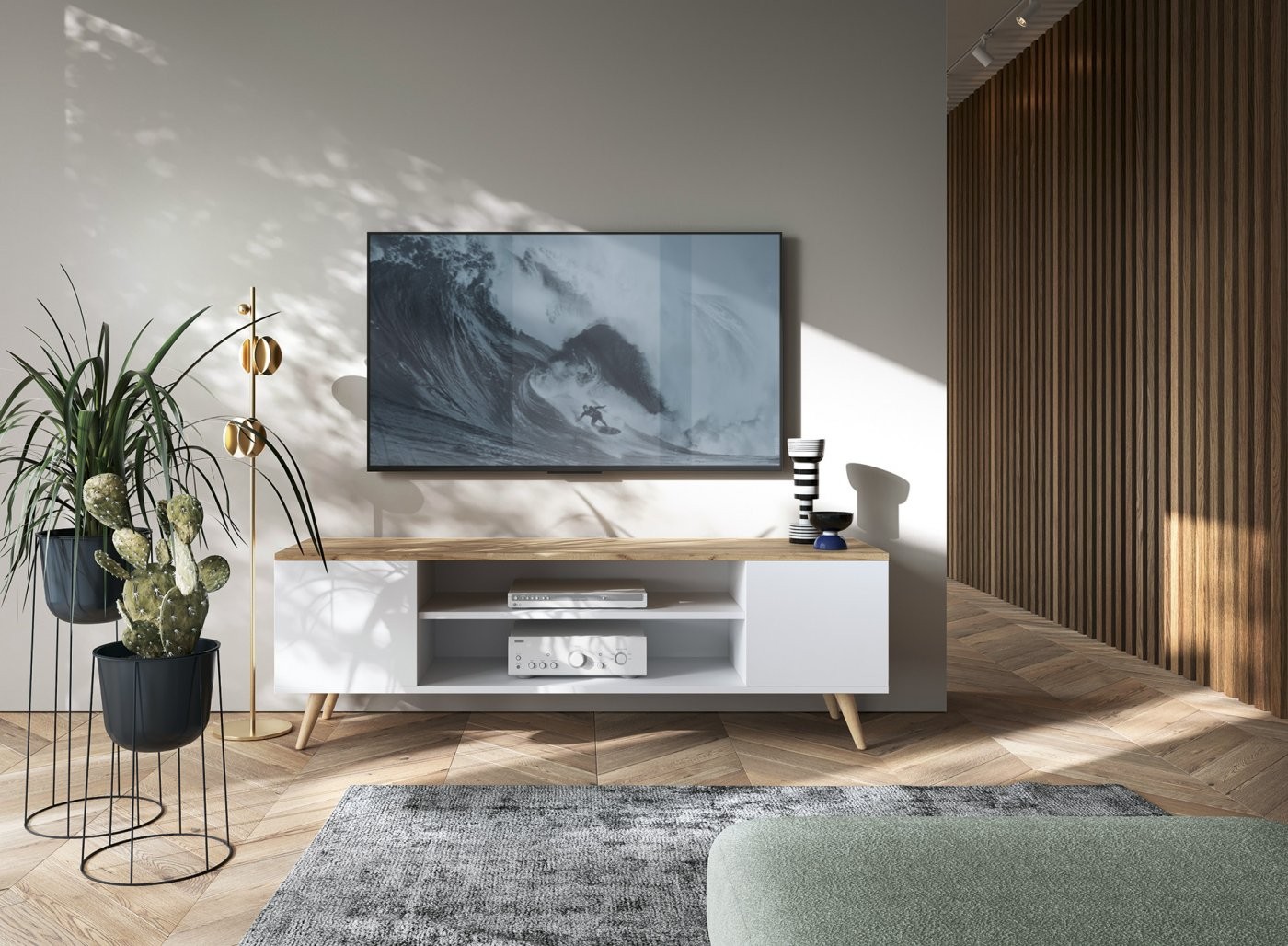 TV komoda PETRA dostupna je u više kombinacija boja, što omogućuje prilagodbu vašem ukusu i prostoru. Sa svojim jednostavnim, ali sofisticiranim dizajnom, idealan je izbor za svaki dom.