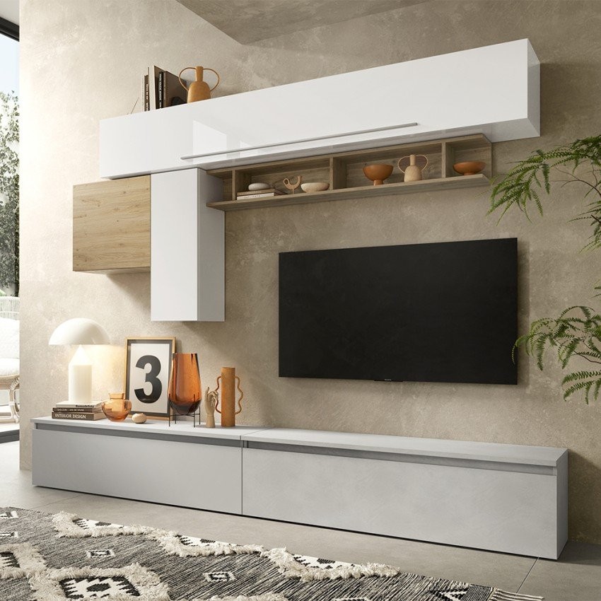 Ova modularna kompozicija omogućuje optimalnu organizaciju prostora i elegantno postavljanje televizora i dekorativnih elemenata. Svojom svestranošću prilagođava se različitim stilovima uređenja – od klasičnog do minimalističkog.