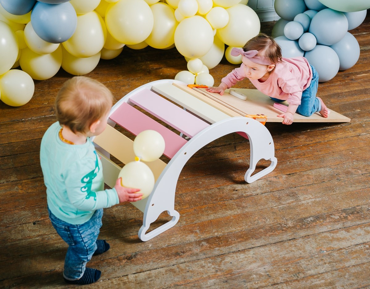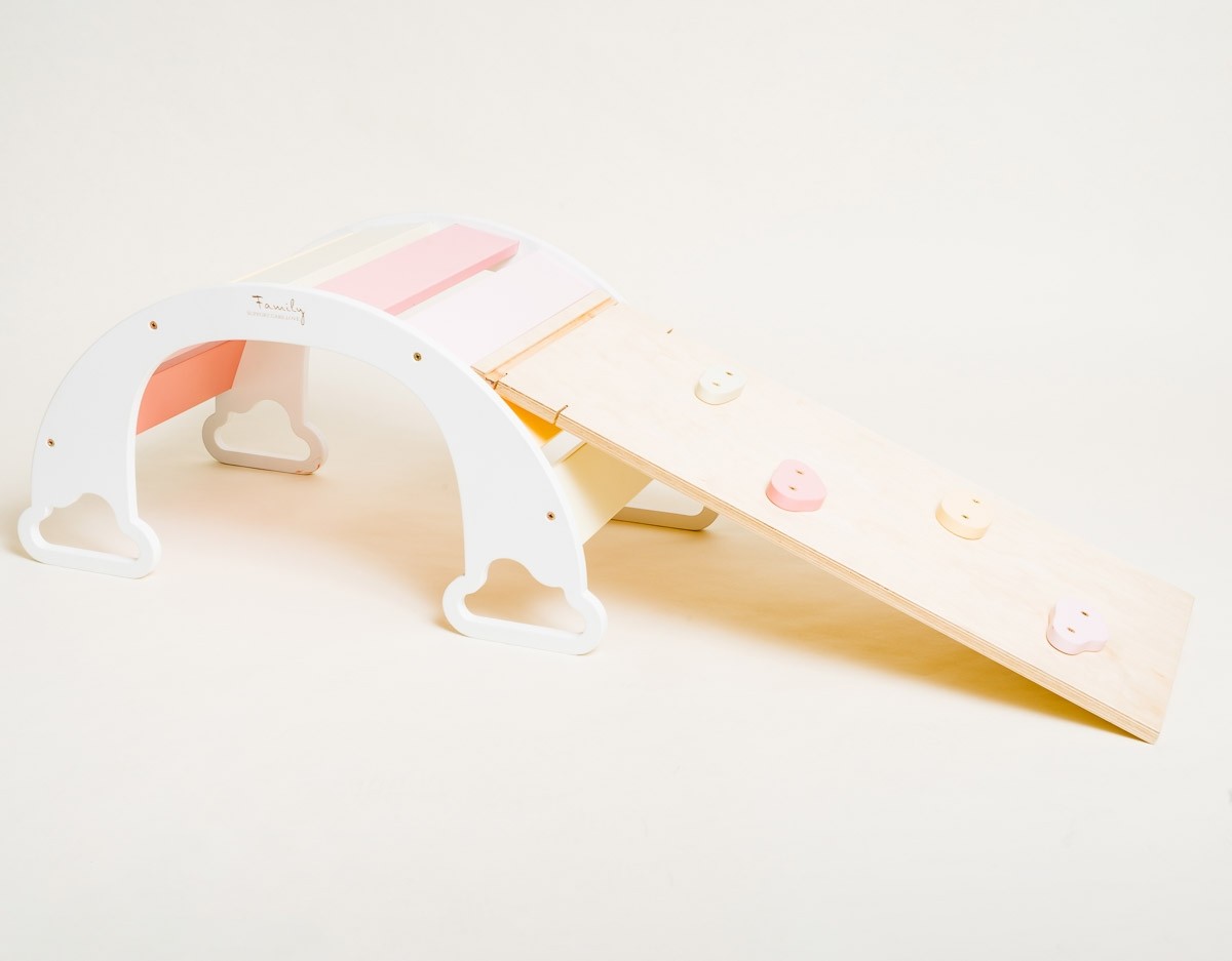 MONTESSORI LJULJAČKA SA ZIDOM ZA PENJANJE odlična je igračka za razvoj motoričkih i kognitivnih vještina vašeg djeteta. Možete birati između tri različite kombinacije boja, među kojima ćete sigurno pronaći onu pravu koja će biti užitak za vaše dijete. Zid za penjanje može se jednostavno montirati ili skinuti s ljuljačke, koju dijete može koristiti i za penjanje, ili kao pult za igranje raznih igara.