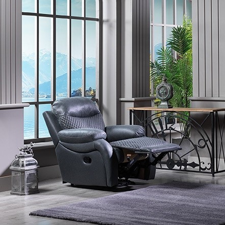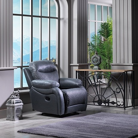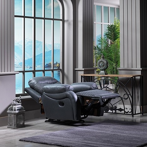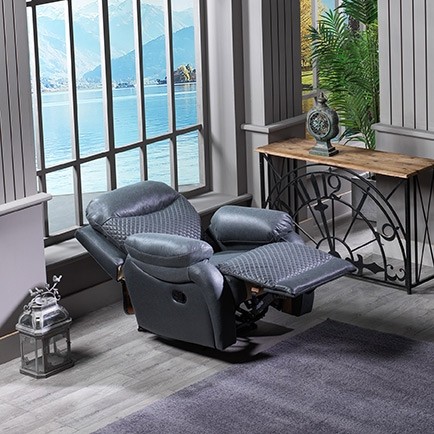 Elegantan i moderan naslonjač dostupan u bež, crvenoj i sivoj boji pogodan je za svakoga tko želi udobnost. Naslonjač je iznimno udoban i ima nekoliko funkcija. Može se spustiti u ležeći položaj uz pomoć ručke i ima oslonac za noge na podizanje. Baza naslonjača je metalna i lakirana u crno za bolju zaštitu. Sjedalo je dubine 55 cm i visine 49 cm. Maksimalno opterećenje je 110 kg.
