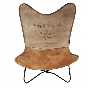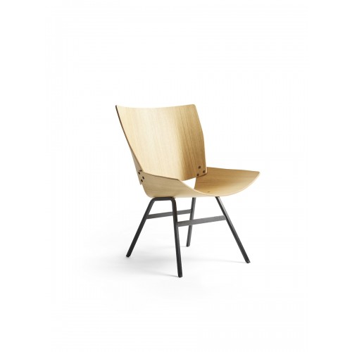 Naslonjač FLARUM 2 minimalističkog je dizajna te presvučen smeđom kožom i tkaninom. Baza stolice izrađena je od crnih metalnih cijevi.