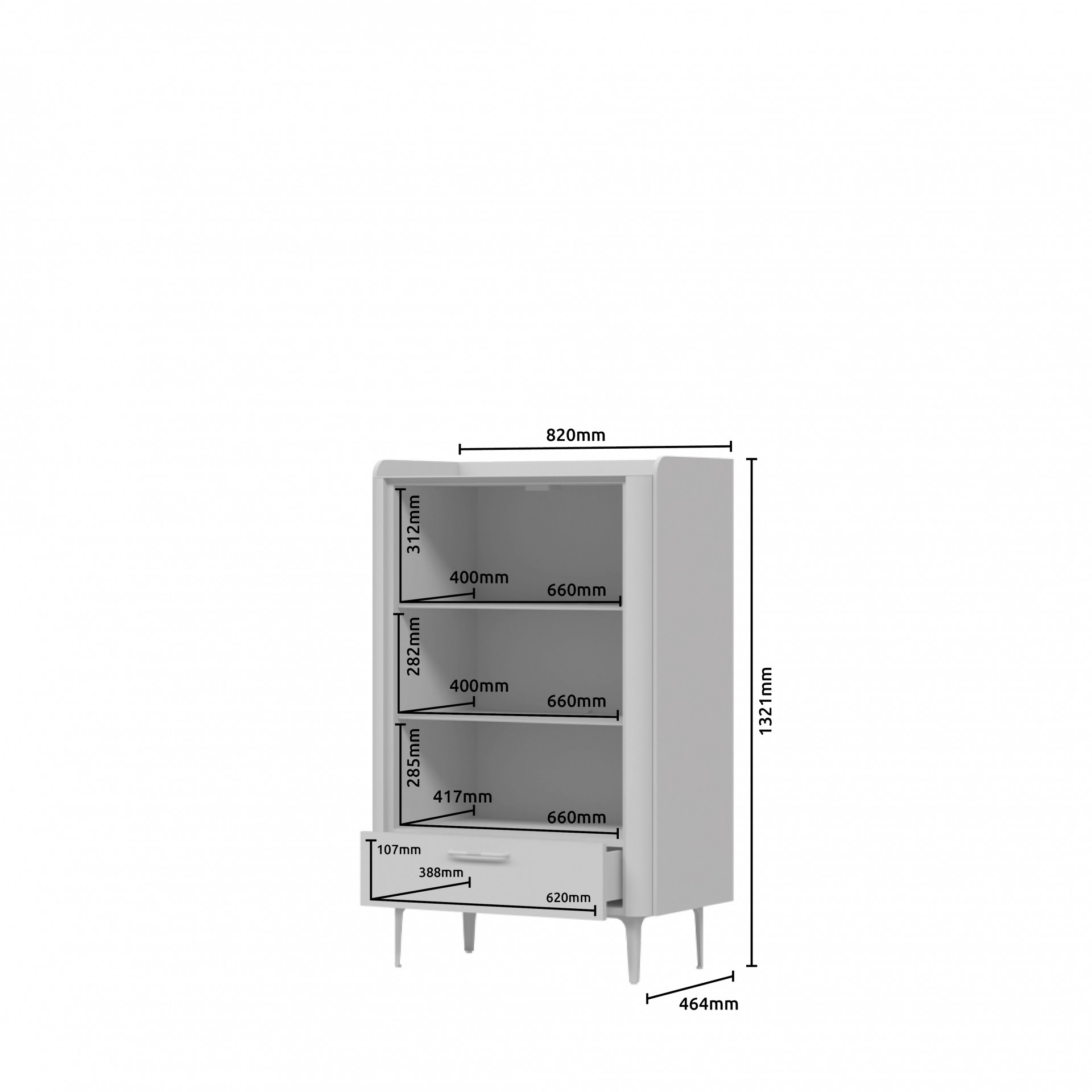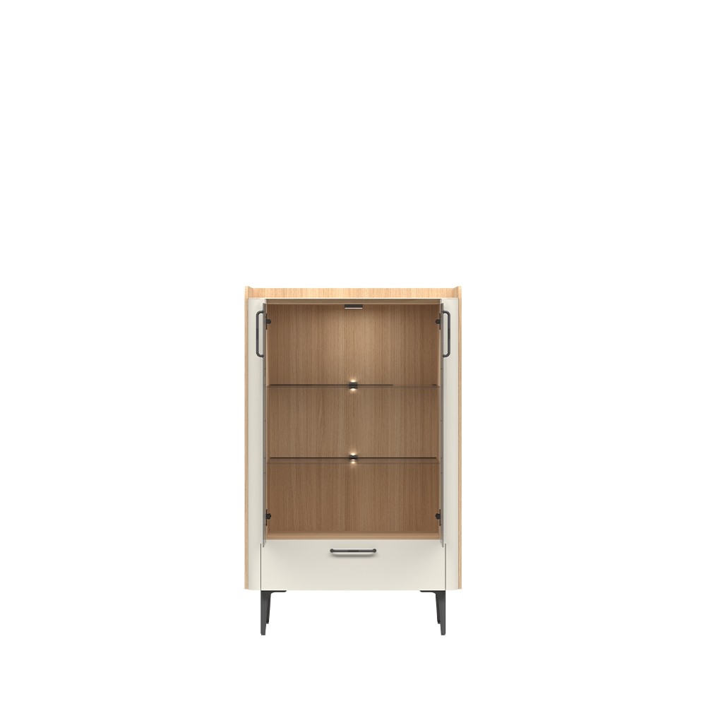 Profinjena niska vitrina RADDA AIR unijet će u vaš dom dašak modernog i elegantnog izgleda. Parsol staklo omogućuje diskretan pogled u unutrašnjost vitrine, a staklene police i LED rasvjeta dodatno upotpunjuju izgled vitrine.