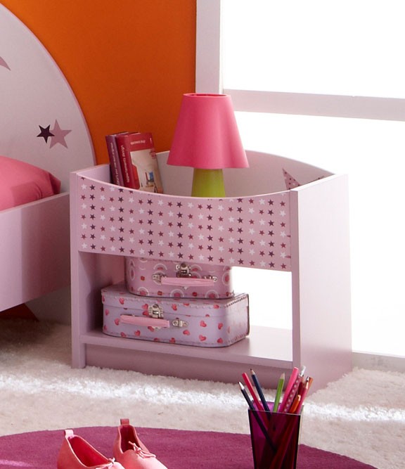 Noćni ormarić Fairy dostupan je u roza boji s uzorkom. Ormarić je dio linije Fairy i primjeran je za djevojačke sobe.